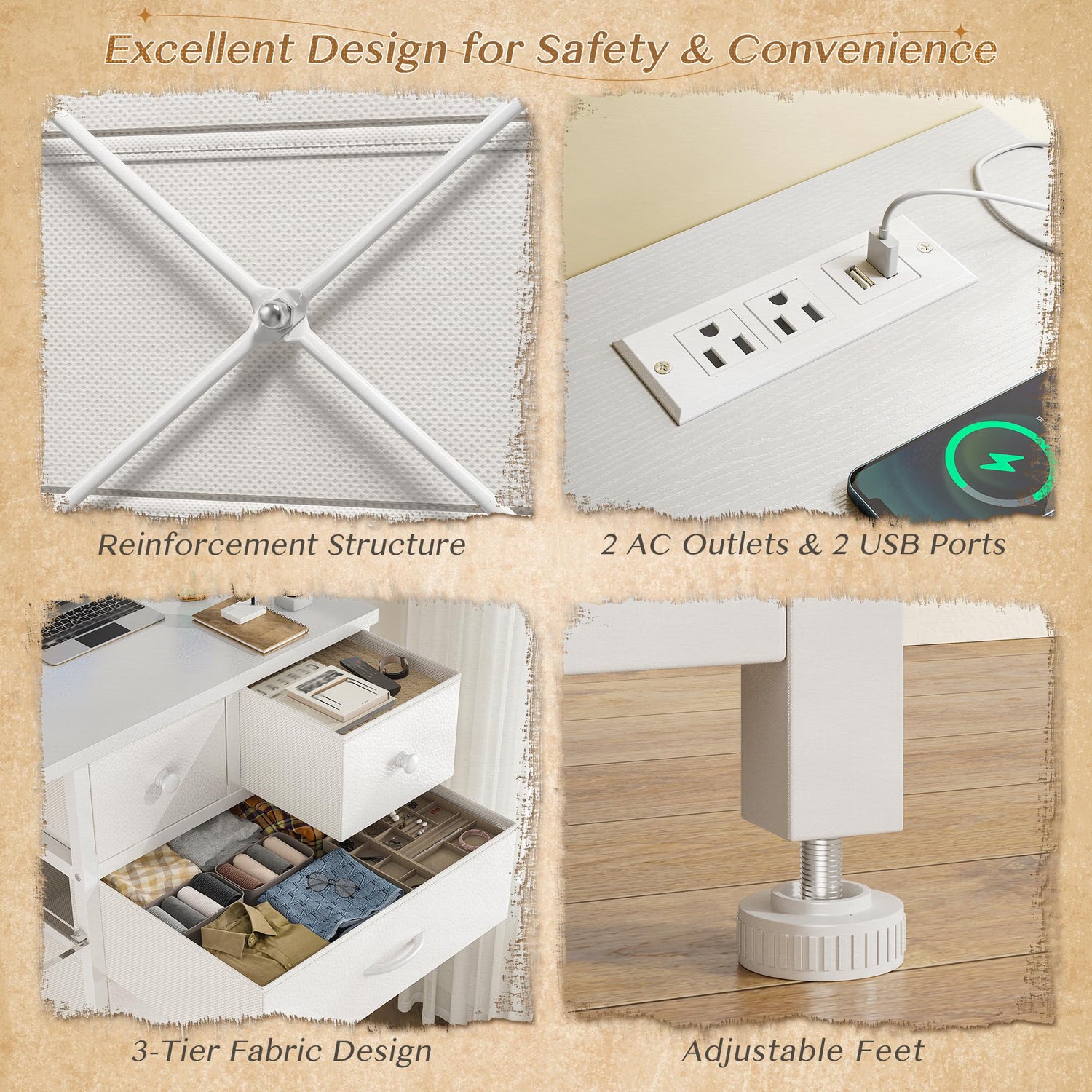 - Convenience with Charging Station : Charge your devices with a built-in station on this dresser, this dresser for bedroom is designed with 2 power outlets and 2 ports, so you can easily charge your TV and other media devices without the need for extra extension cords while organising your space with ease with fabric dresser