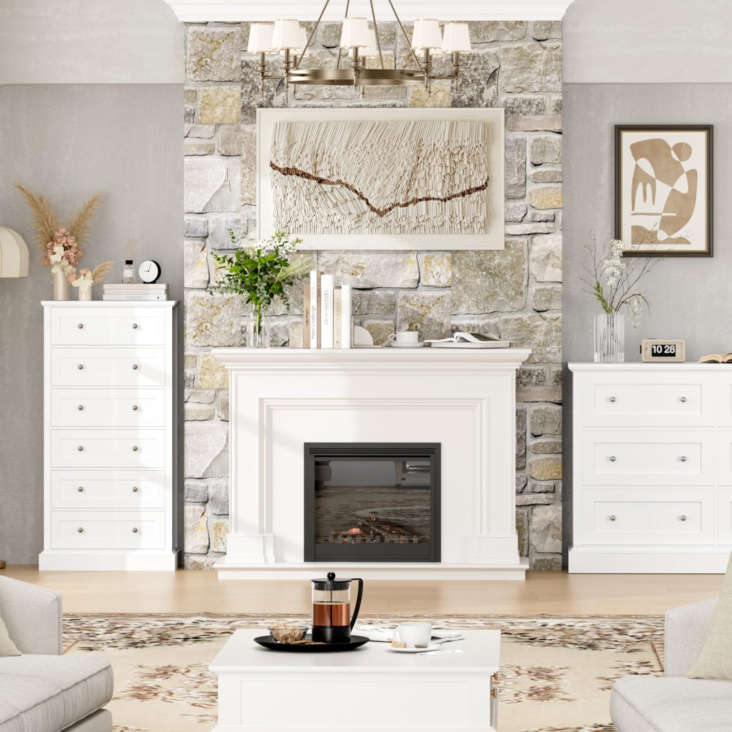 - Classic & Modern - Finished in pure white and embellished the matte silver handles give people a touch of mystery, elegance, and modernity. Putting retro accessories on the countertop of the tall dresser can also transform it into a piece of classic-style furniture.