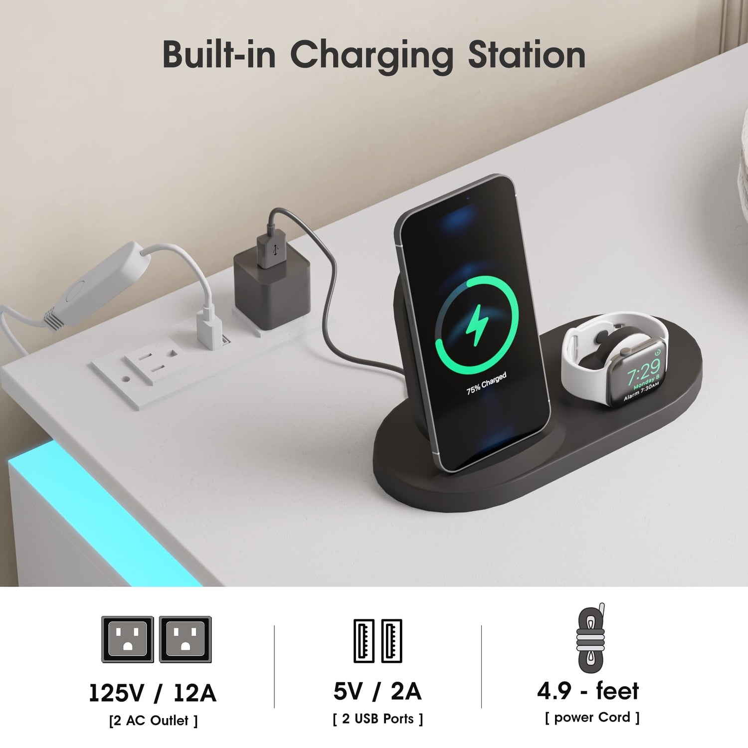 - 【Dresser Drawer with Charging Station】- The wide drawer dresser is equipped with a built-in charging station on the top, including two AC power outlets and two USB ports, which can charge up to four of your electrical devices simultaneously. You can charge your phone, tablet, computer, and other small appliances at all times without having to struggle to find a charging plug.