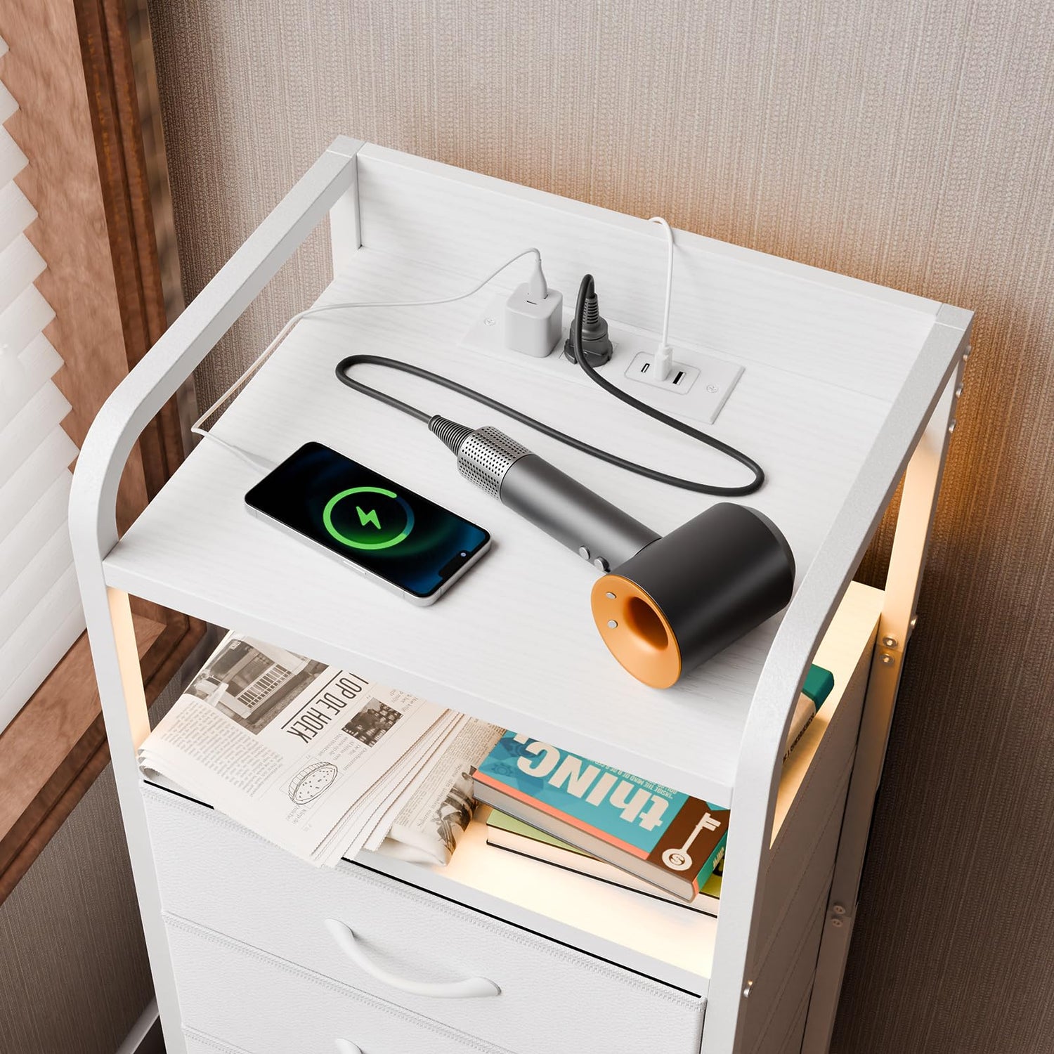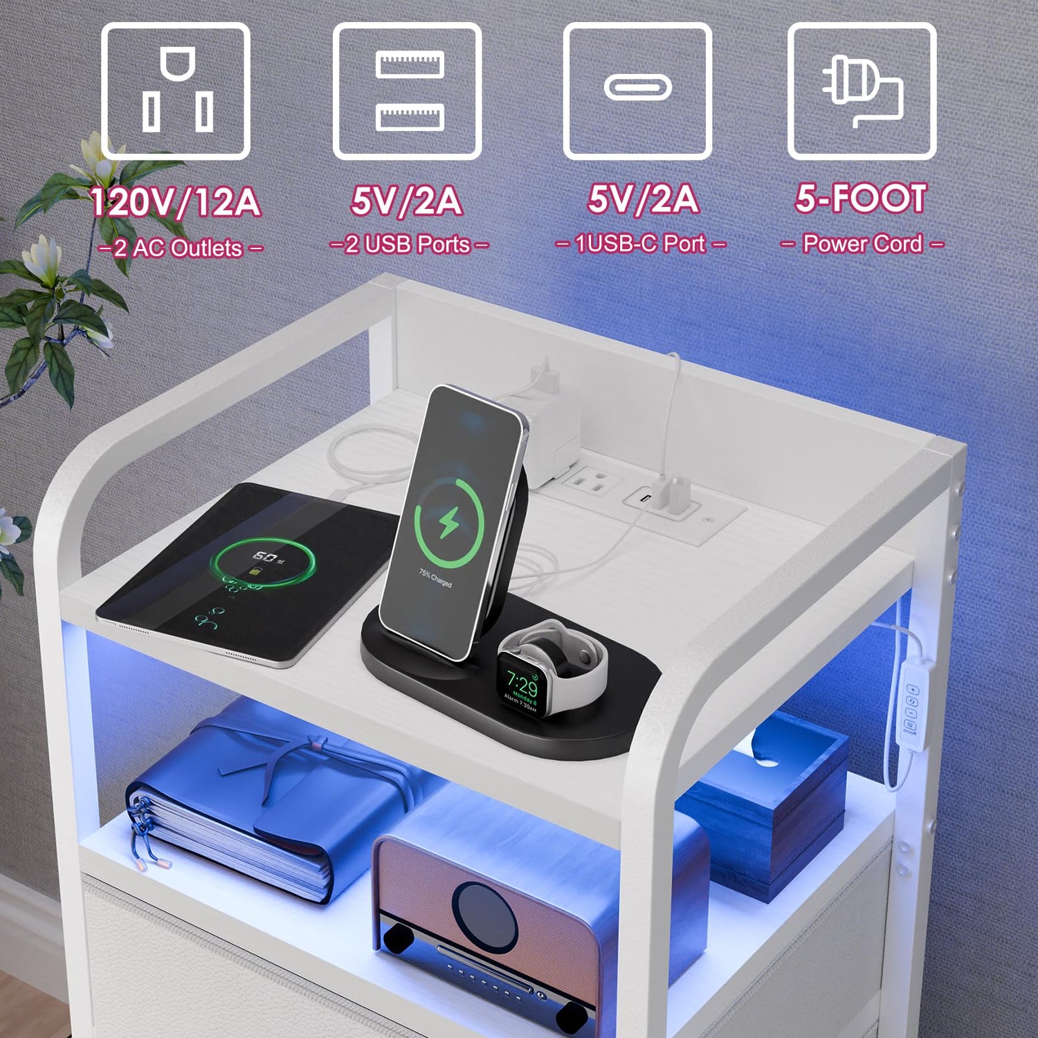 - 【Night Stand with Charging Station】 - This bedroom end table comes with 2 AC outlets 1 Type-C and a 5 ft long power supply cord. You can easily connect and charge electronic devices, such as smartphones, tablets, desk lamps, and other mobile devces, with everything within reach. Say goodbye to the trouble of insufficient sockets and wake up to enjoy a worry free charging experience.