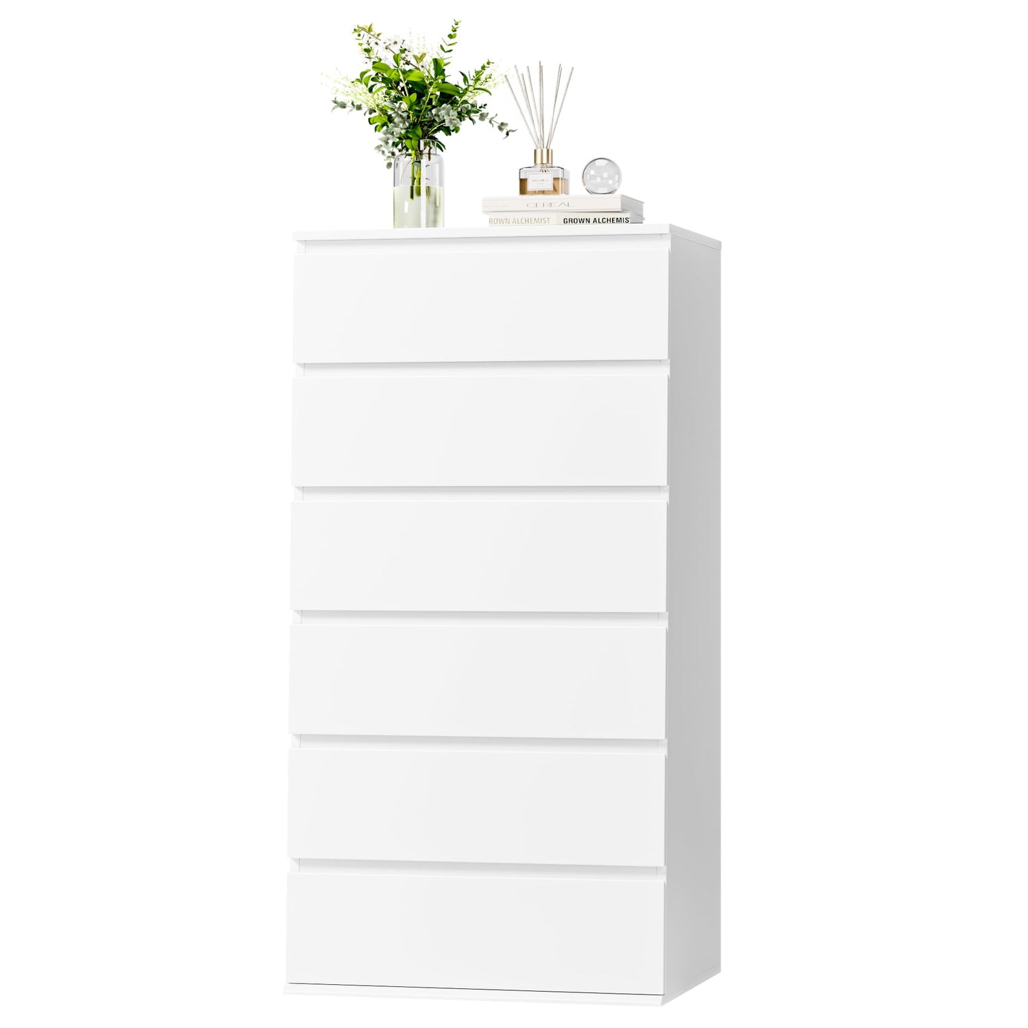 FOTOSOK White Dresser, 6 Drawer Dresser, Modern Tall Floor Storage Cabinet with Metal Sliding Rail, Wooden Handleless Drawer Cabinet, 6-Layer Large Capacity Vertical Dressers for Home & Office