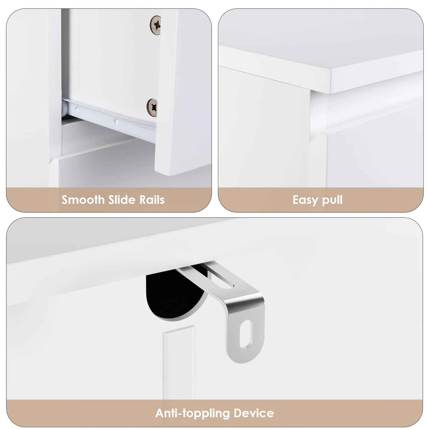 - ☑ 6 Huge Drawers ❤ This vertical dresser cabinet has six large storage drawers. Two smooth slides are installed with every drawer unit, so they are easy to pull in or pull out. More importantly, this white dresser uses a unique handleless design that does not occupy any space and looks more elegant.