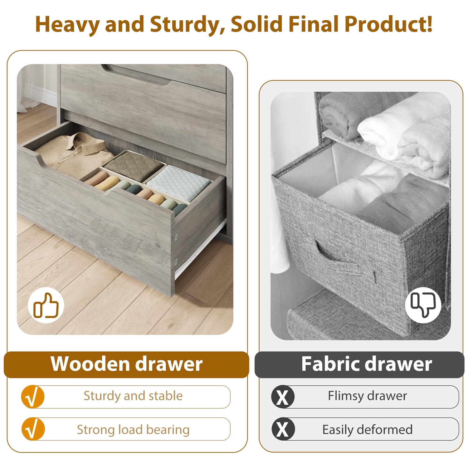 - STURDY STRUCTURE: Our dresser is crafted from high-quality MDF engineered wood, guaranteeing outstanding strength and durability. The 25mm thick waterproof tabletop ensures excellent stability, while the overall dimensions of 35.4" L x 16.1" W x 50.2" H make it a practical choice for any room. For added safety, the dresser is equipped with an anti-tipping device, providing you with peace of mind