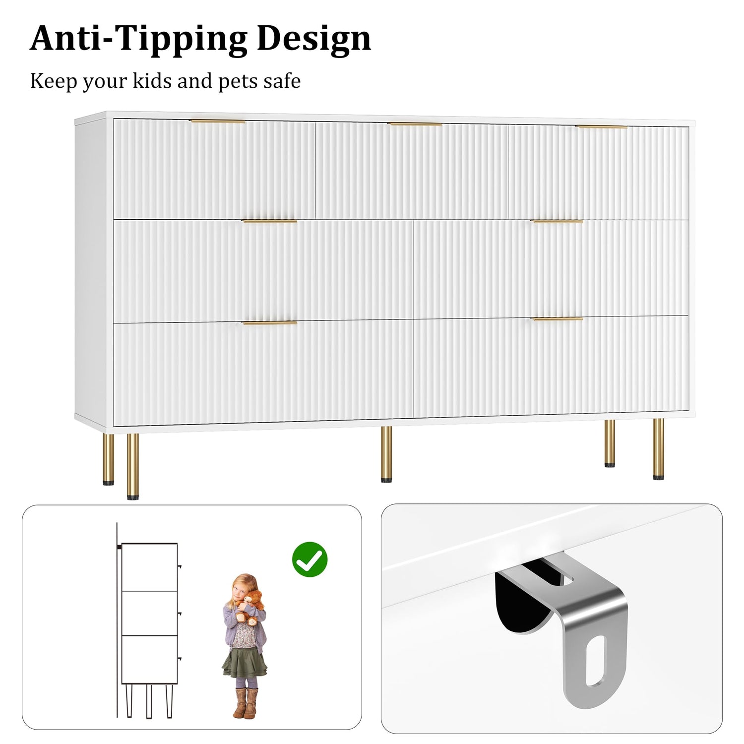 GarveeHome Fluted Wood Dresser 7 Drawers Dresser for Bedroom, Large Modern White Dresser with Gold Handle, Wood Drawer Organizer for Bedroom, Living Room, Hallway, Entryway