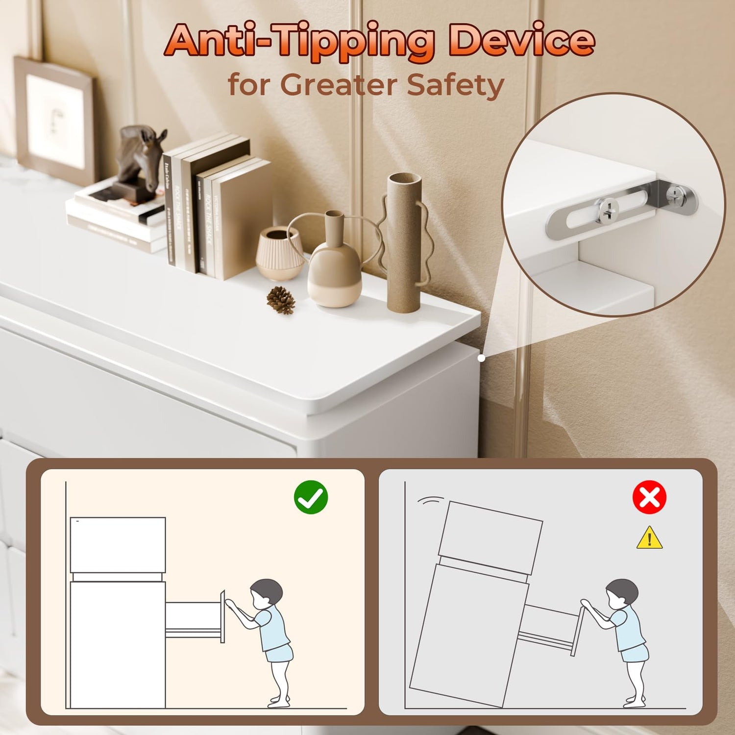 - 【User-Friendly Design】Designed with hidden handles, each drawer offers a sleek, modern look that enhances your home’s aesthetic while preventing accidental scratches from protruding grips,ideal for families with kids or pets. Pre-installed with smooth metal slides, the drawers glide open and close effortlessly, ensuring a seamless experience every time. Even with heavy use, these durable slides remain undamaged, protecting the furniture and providing long-lasting performance.
