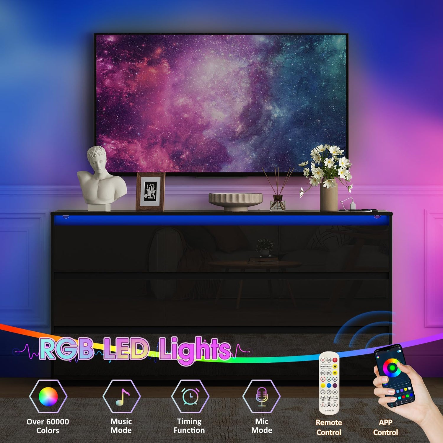 - with Charge Station and LED Light-This is not a dull storage cabinet, it can also be a decoration for your stylish home . We designed the socket and light strip. Following the instructions, you can easily switch the lights on and off on your mobile device and switch different light colours, turn on your speakers and start a nice music light party.