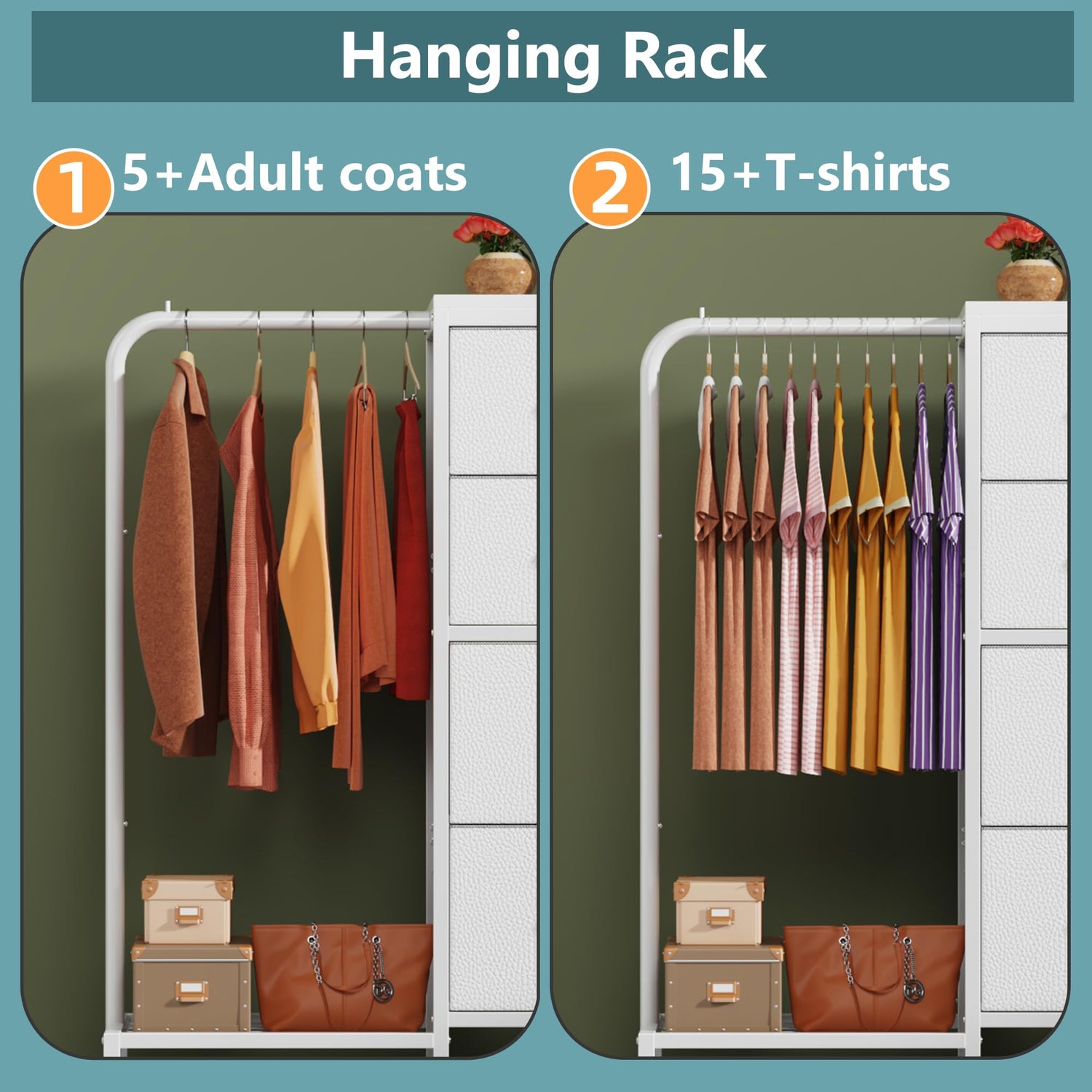 - 【Dresser & Clothes Rack】2-IN-1 design maximizes space utilization. One side is for hanging clothes, while the other side drawers for storing various garments; 44'' Height taller than other 29''H 4-drawer small dresser and increase 3X space