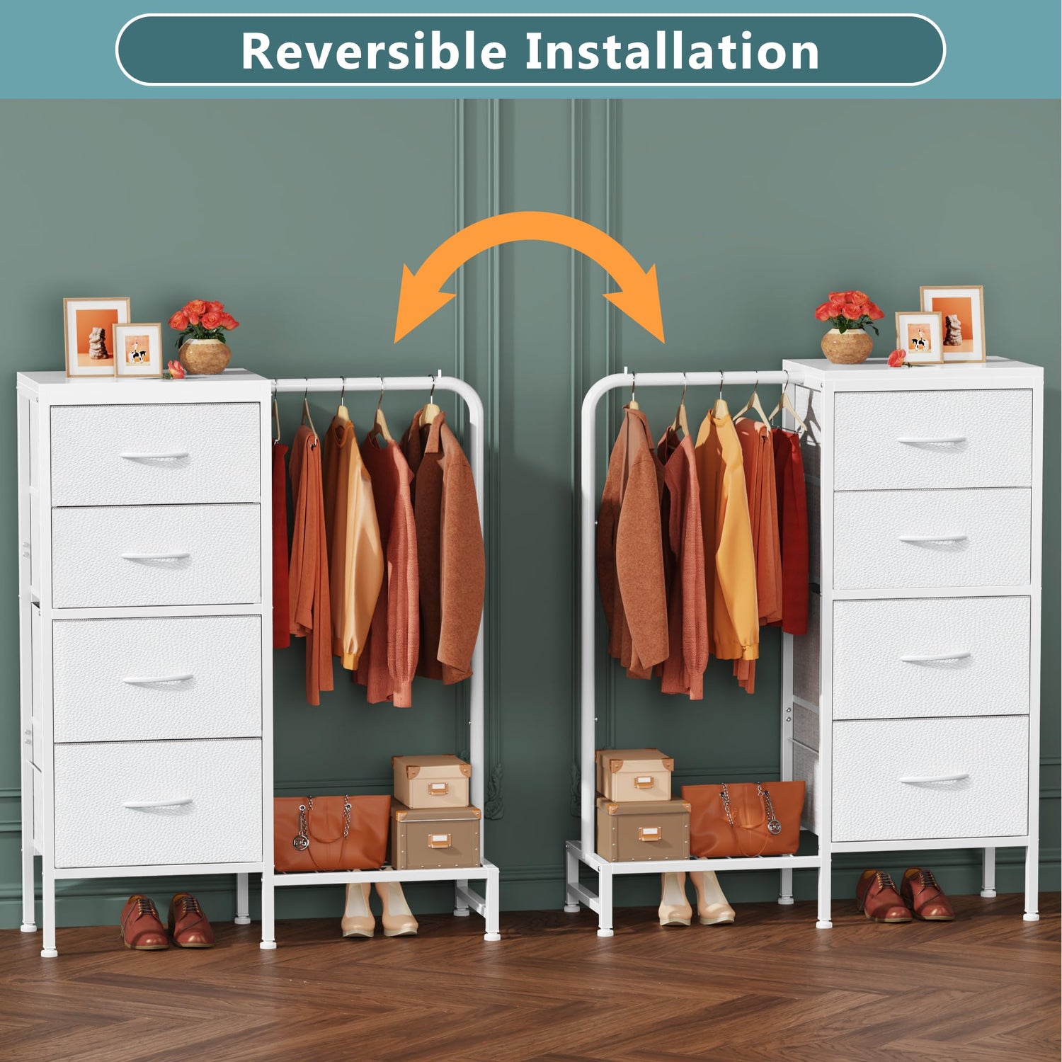 - 【Reversible Installation】This 4 drawer closet dresser can be installed reversible based on your preference. It comes with clear installation instructions and includes an installation video