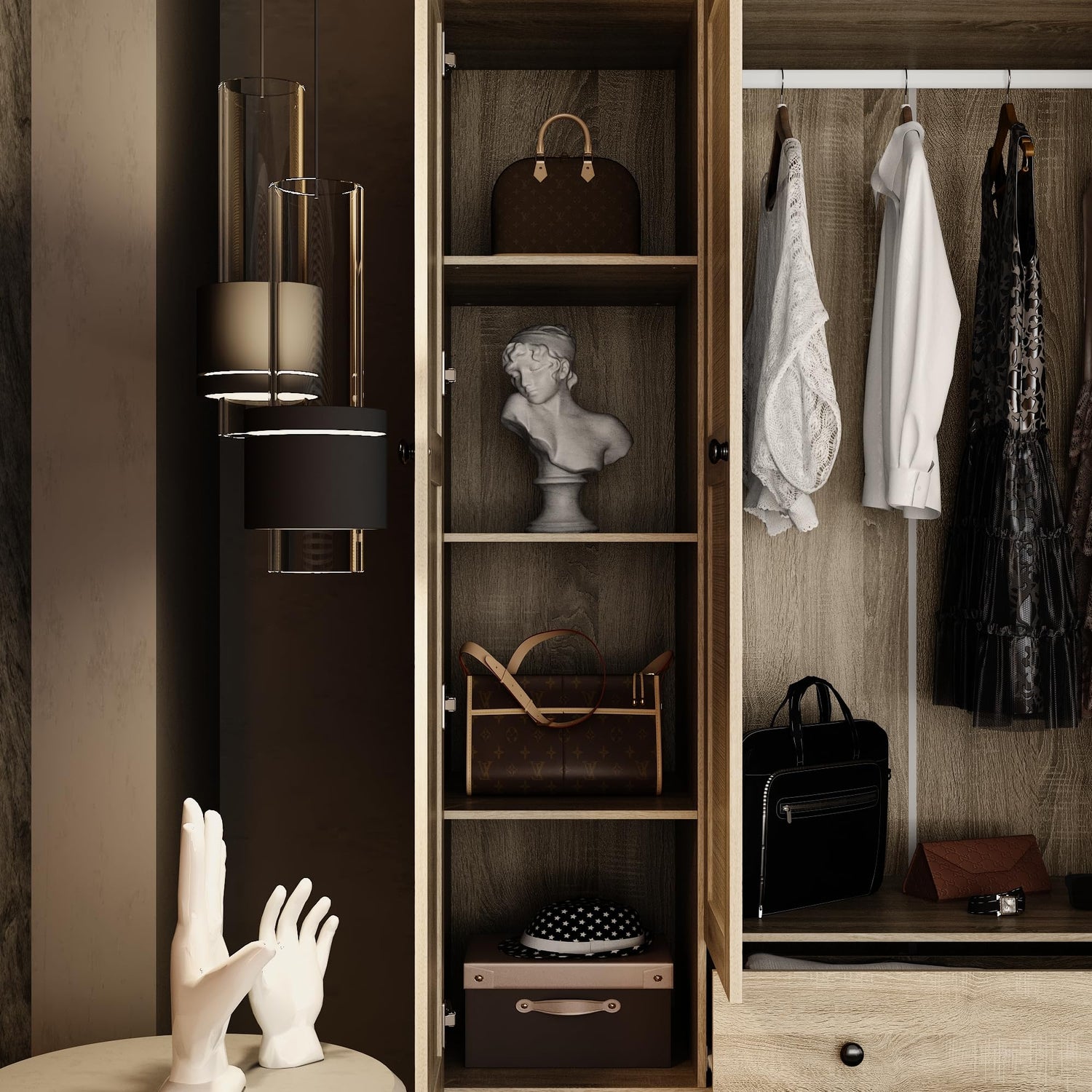 - Versatile Design - Create the versatile storage options your home needs while adding the beautiful style and simplistic design of this wardrobe storage cabinet. Without too much elaborate ornamentation, the storage cabinet will bring tidy and elegance to your home