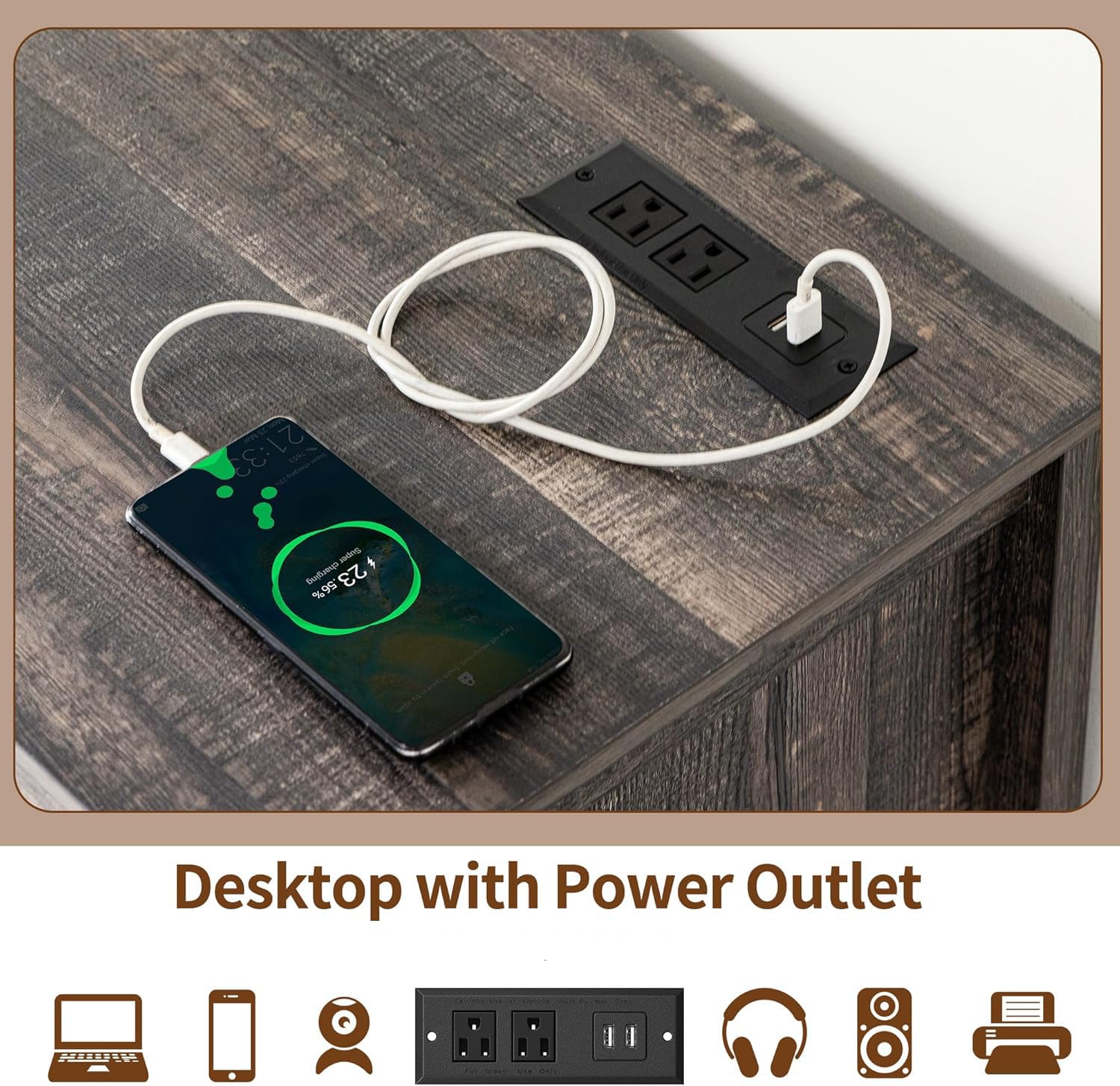 Homkdom Dresser for Bedroom with Charging Station & LED Light, 48'' H Tall Dresser & Chests of Drawers,Rustic Oak