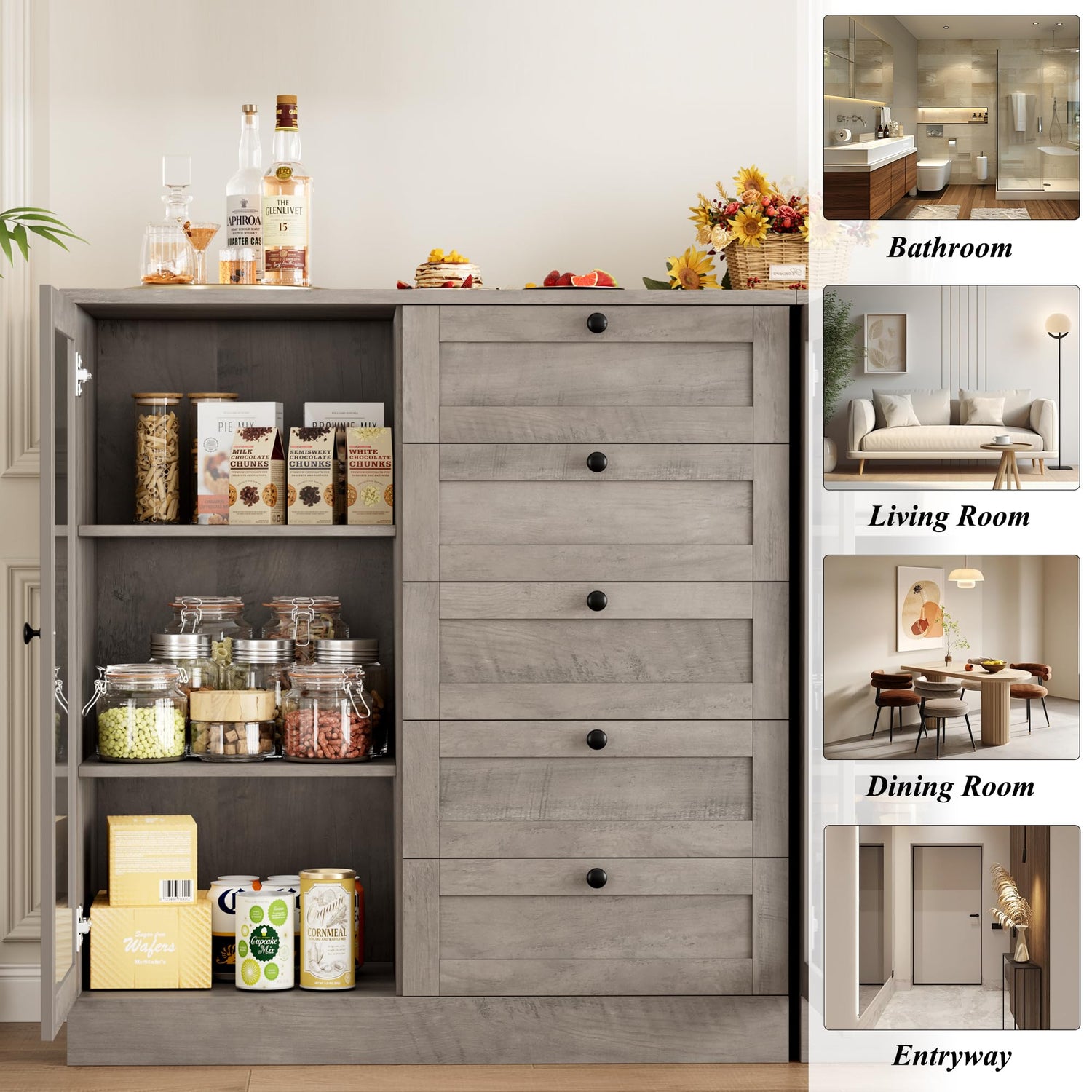 - 【Multi-Purpose】This modern dresser with door is a versatile pick that can be ready to tuck neatly as a storage dresser, a coffee bar, a kitchen sideboard or a storage console table in your kitchen, living room, bathroom, entryway or dining room. What's more, it can perfectly maximize your storage and create a coordinated look by placing alone or in a pair