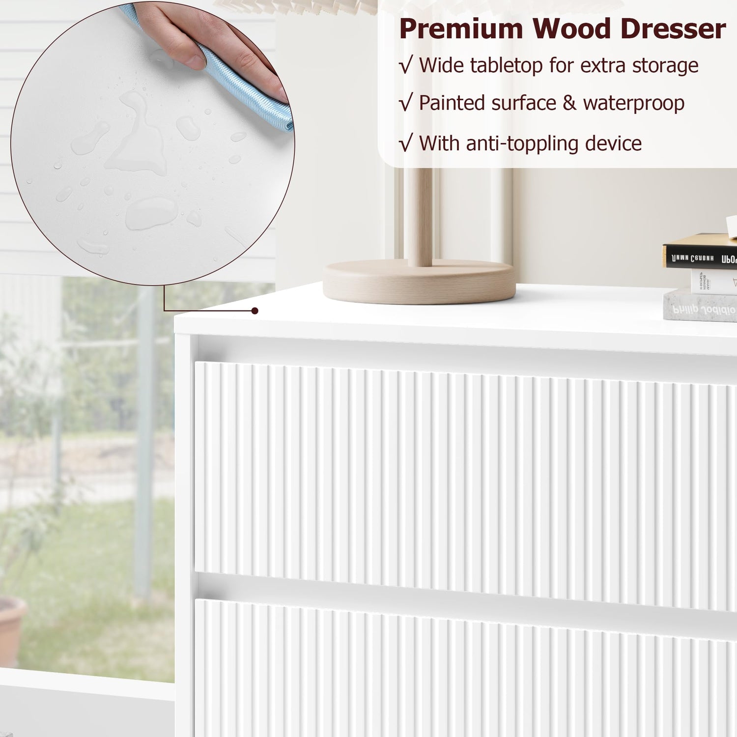 - Modern & Chic Style: Crisp white look complements perfectly the handleless drawers which are highlighted by the wave-shaped drawer fronts, this 6 drawer dresser exude casual elegance while enhancing your living