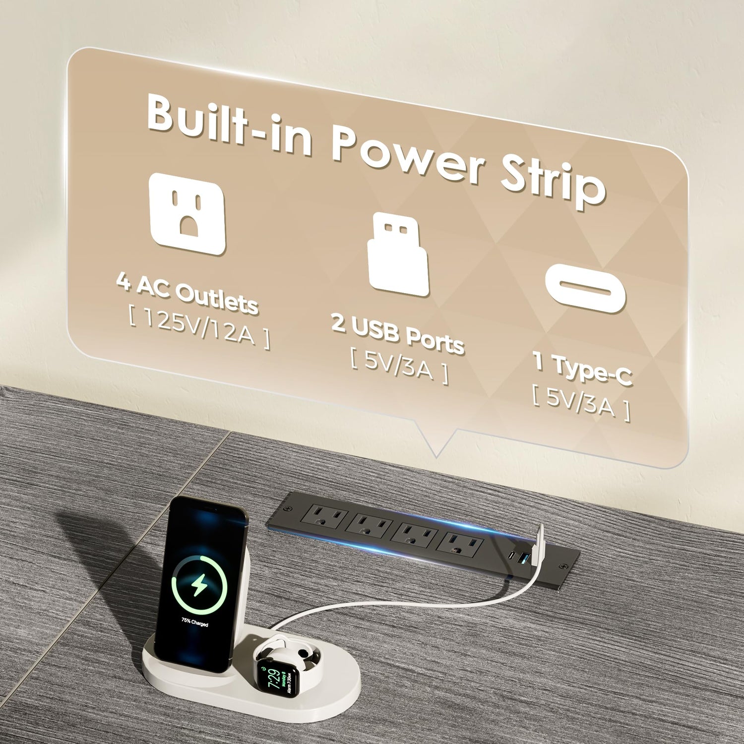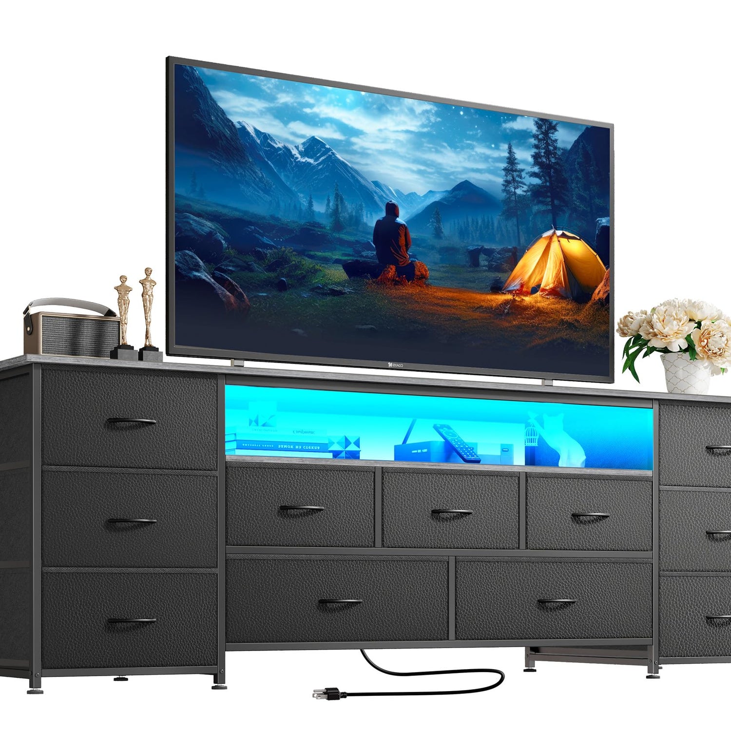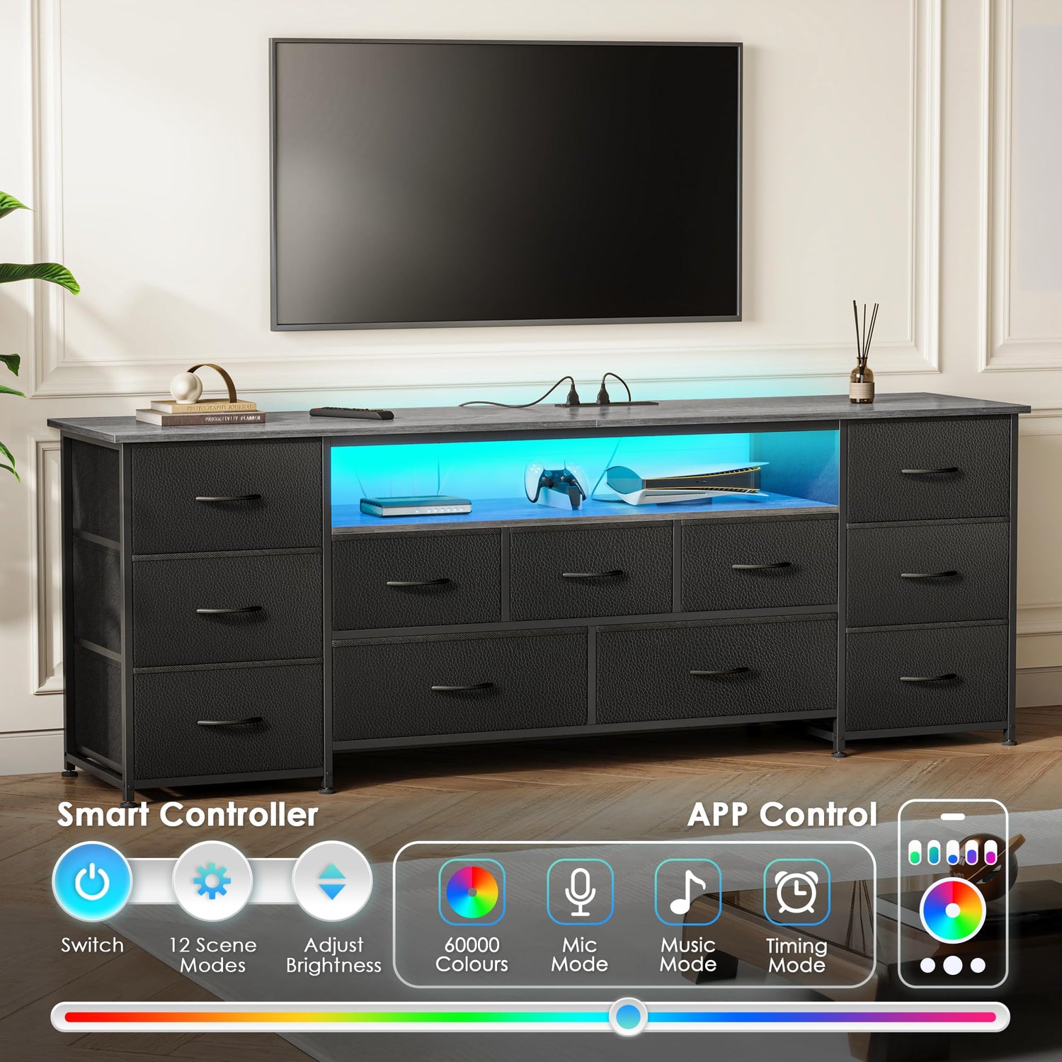 - 【Power Outlets & LED Lights】Equipped with 4 AC outlets, 2 USB ports and 1 Type-c port, this TV stand with storage offers convenient charging for your TV, gaming equipment, and other electrical devices. Use LED lights on the fabric dresser to add watching vibes via smart controller or use the app to explore over 60,000 colors, timing mode, mic mode, and music mode. Huuger