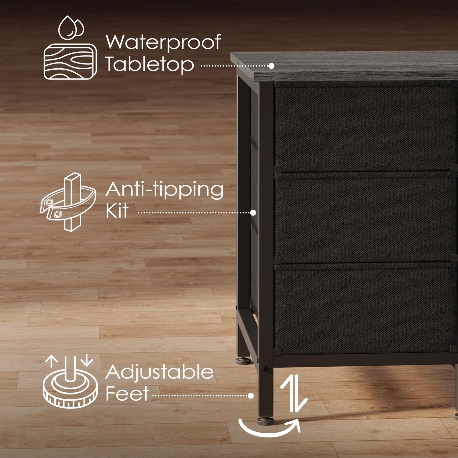 - 【Much Stabler and Safer】Crafted from durable particleboard, a sturdy metal frame and firm fabric drawers, this bedroom dresser stands the test of time. Balanced adjustable feet and an anti-tip device ensure stability, even on uneven floors