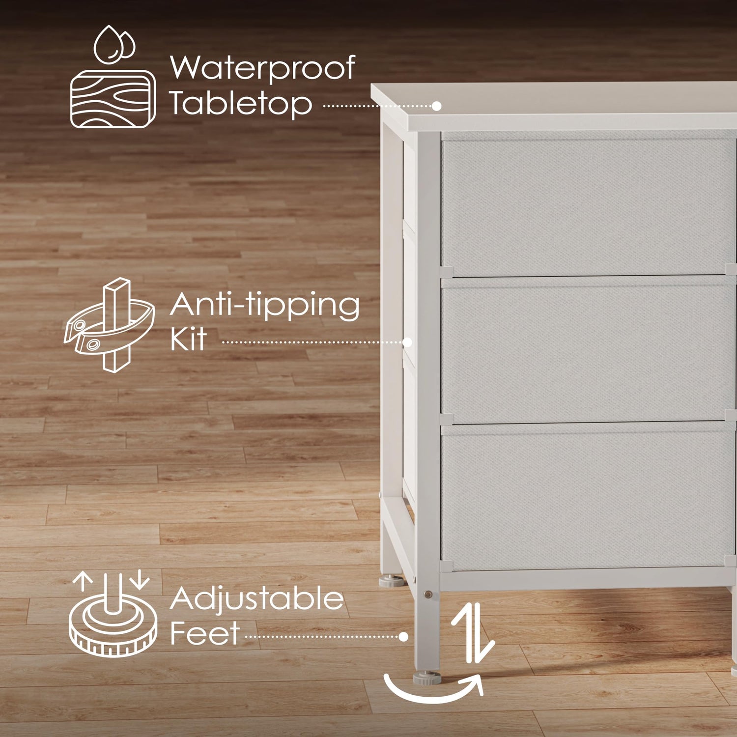 - 【Much Stabler and Safer】Crafted from durable particleboard, a sturdy metal frame and firm fabric drawers, this bedroom dresser stands the test of time. Balanced adjustable feet and an anti-tip device ensure stability, even on uneven floors