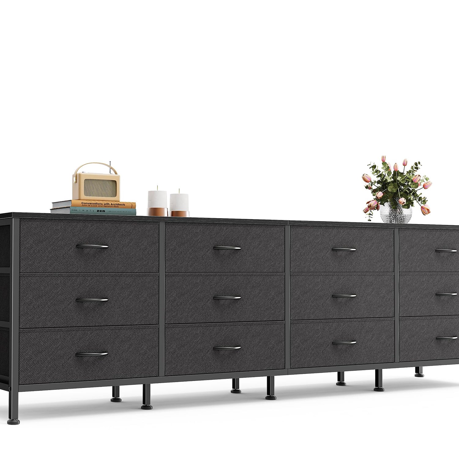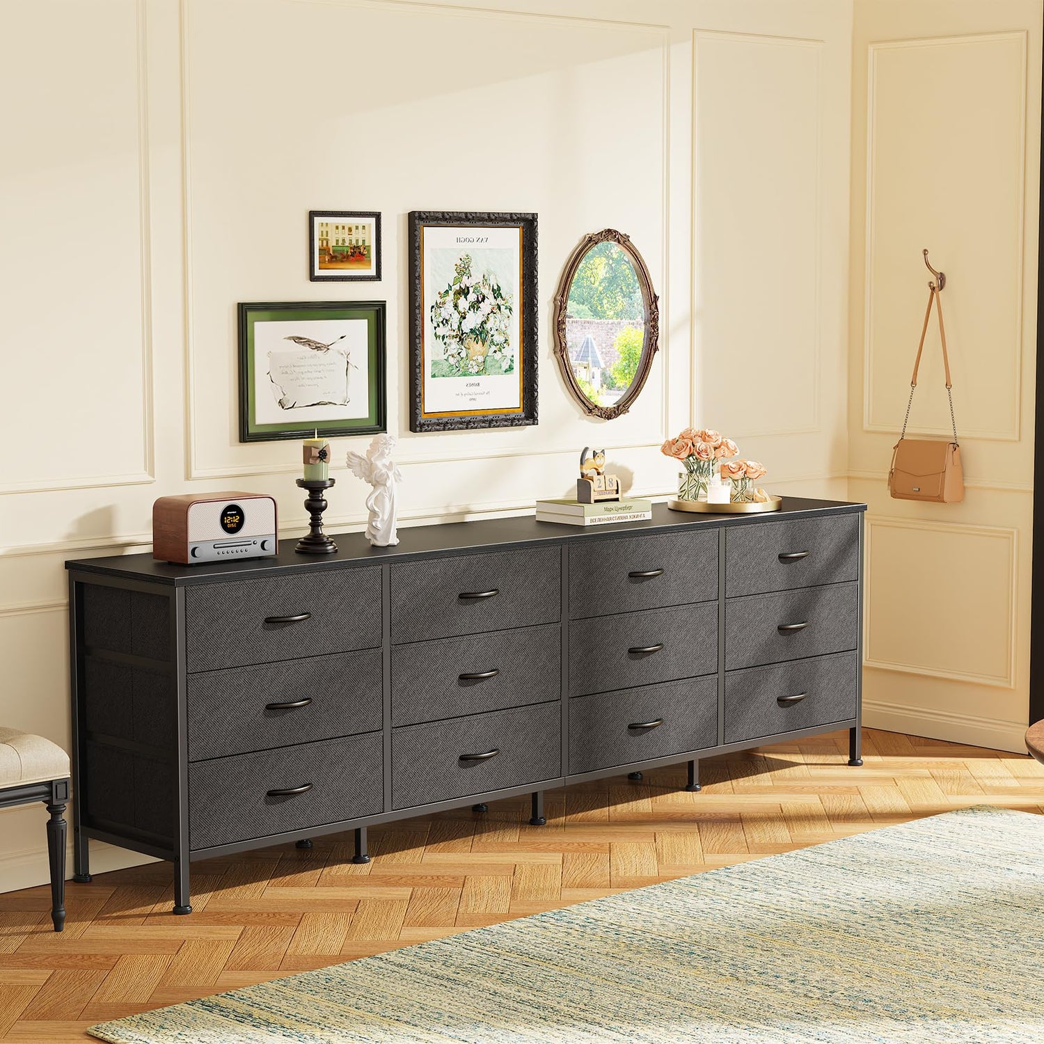 - 【Fabric Dresser with 12 Drawers】Say goodbye to messy spaces with this large dresser for bedroom. Measuring 70.8" x 13.8", the wide wooden top and 12 deep drawers (16.4" x 13.8") provide ample room for clothing, bedding, books, and gaming accessories. Perfect for bedrooms, living rooms, it keeps everything organized and within reach—no more digging through piles of clutter