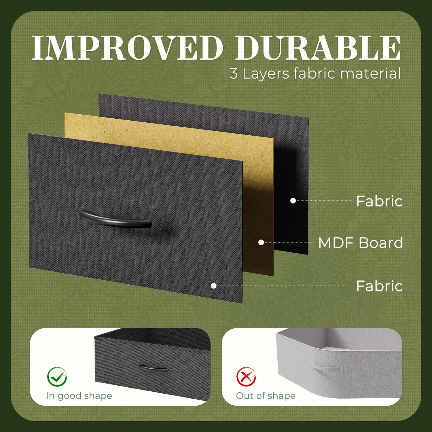 - 【Sturdy and Safe Design】Built with a durable wooden top, high-quality fabric drawers, and a sturdy metal frame, this black dresser is designed to last. The anti-tip kit brings safety for families, while the smooth-glide drawers make it easy for little hands to access items. Plus, 8 adjustable feet keep it stable on uneven floors and protect your surfaces from scratches