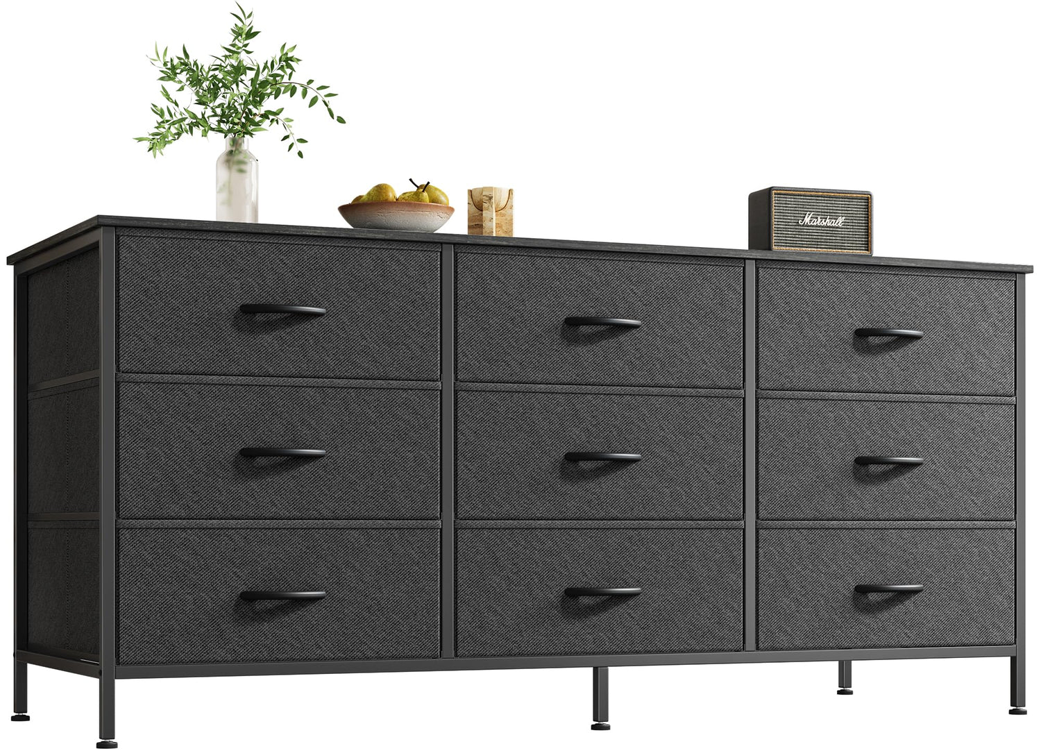 - 【9 Drawer Storage Dresser】 A 47.2 x 11.7 inch wide desktop paired with 9 deep fabric drawers that are 14.8 x 11.7inches. This chest of drawers for the bedroom offers abundant storage. No more hunting around for lost clothes or digging through a mess of clutter. Each drawer's got plenty of space for your media collection, gaming gear, clothes, beddings, and all that good stuff