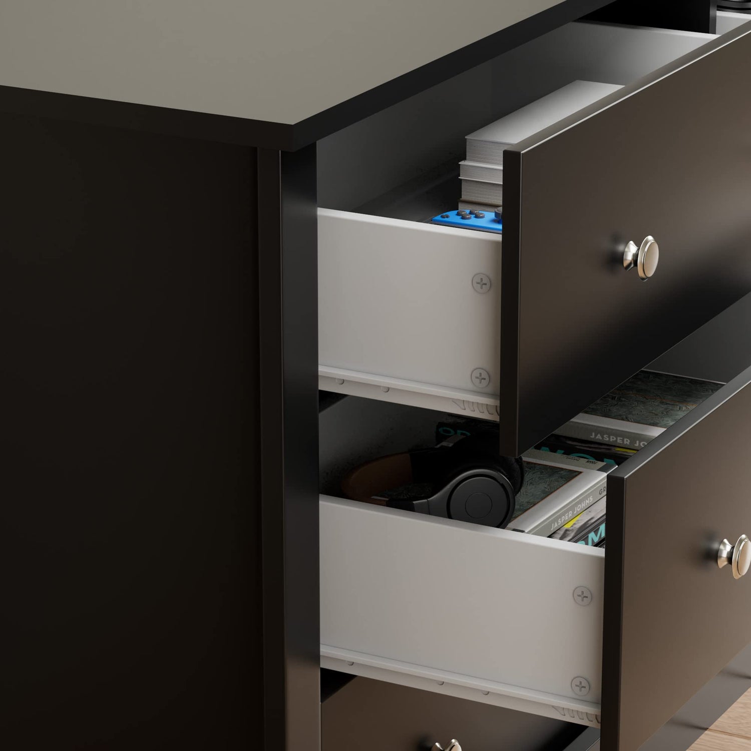 - [Sturdy and Safety] Our drawers are equipped with high-quality metal slides to ensure stability and no noise in daily use. In addition, in order to create a safe environment for your family, this cabinet is also designed with an anti-tipping device, so you no longer have to worry about your family's safety.