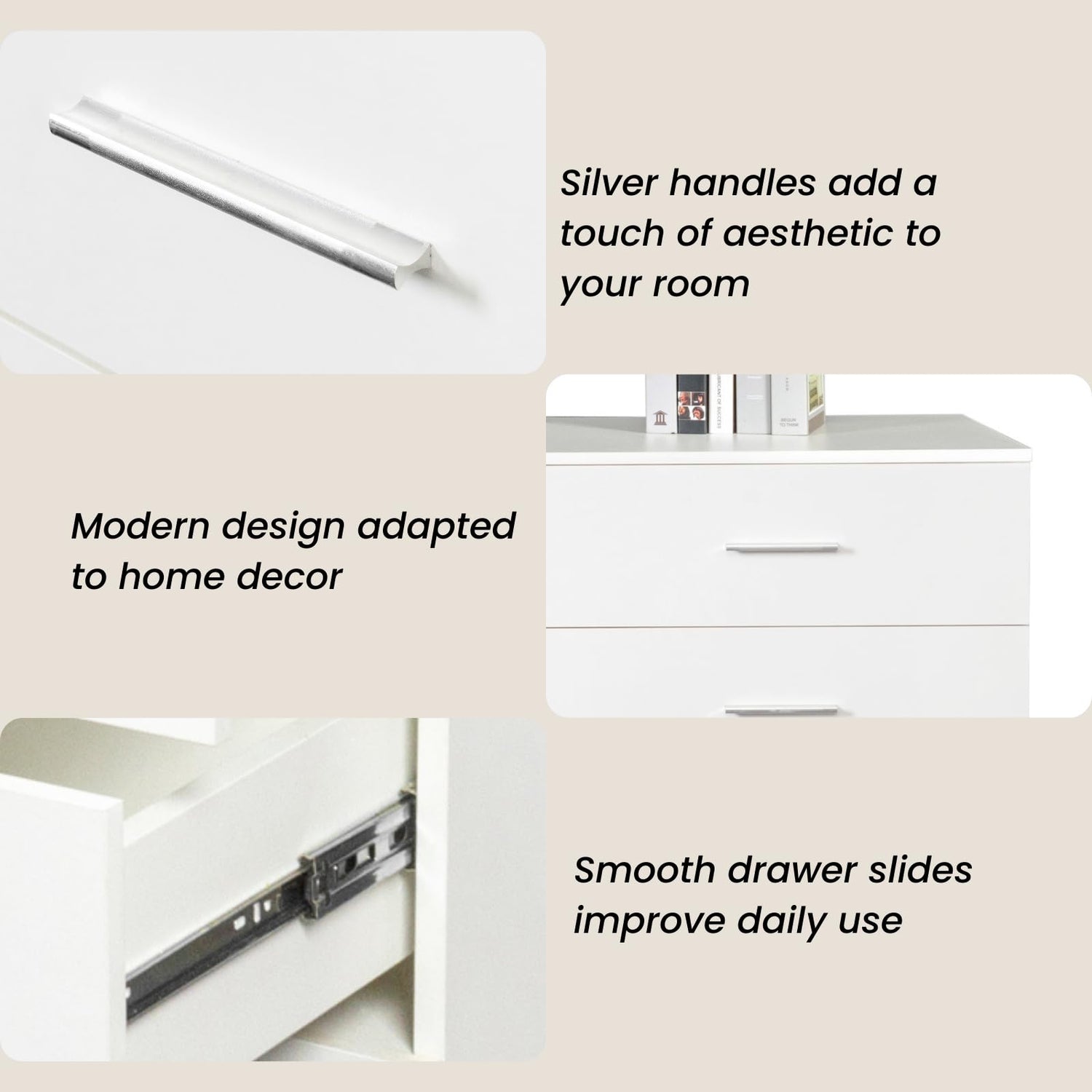 - Robust Wooden Dresser - Wooden dressers for bedroom is crafted from robust P2 class 15mm particle board, ensuring high stability. Smooth wooden veneer ensures easy maintenance. The silver metal handles are durable and suitable for long-term use.