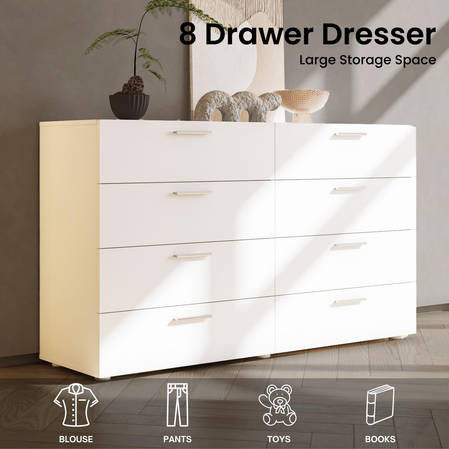- Spacious Storage Dresser - Wide bedroom dressers measure 55.1"L x 15.7"W x 31.5"H, closet drawers take up less space while providing ample storage. Equipped with 8 drawers, each boasting a depth of 13.8 inches providing ample room for accommodating both large and small items.