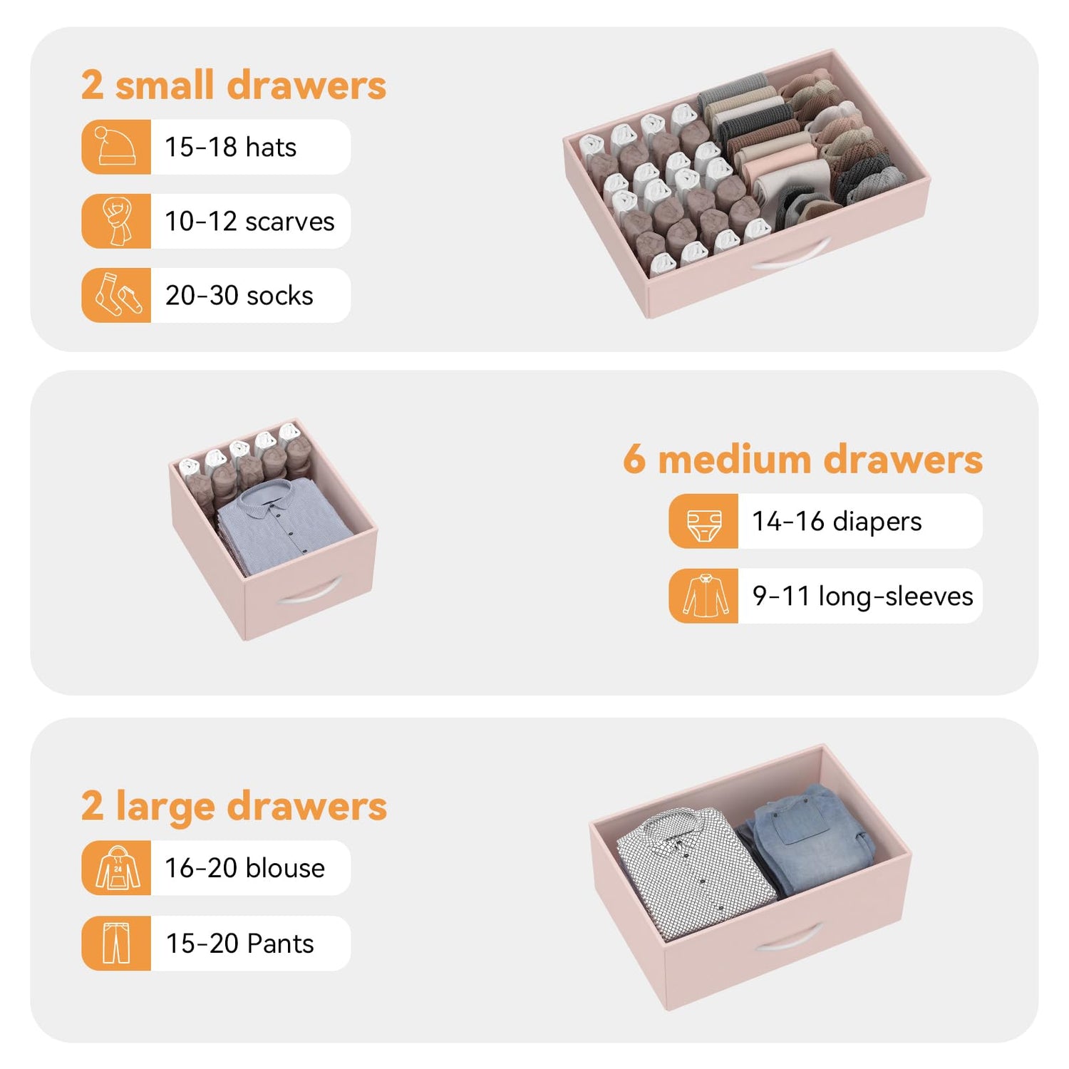 - [Easy assembly and safety features] With easy-to-understand assembly instructions, tools, and labeled parts included, you can enjoy a hassle-free installation with assembly in less than 20 minutes. Your family's safety comes first; this dresser comes with an anti-tip kit to secure it to the wall and a fabric drawer design that ensures there are no sharp corners, creating a safe environment for families with young children.