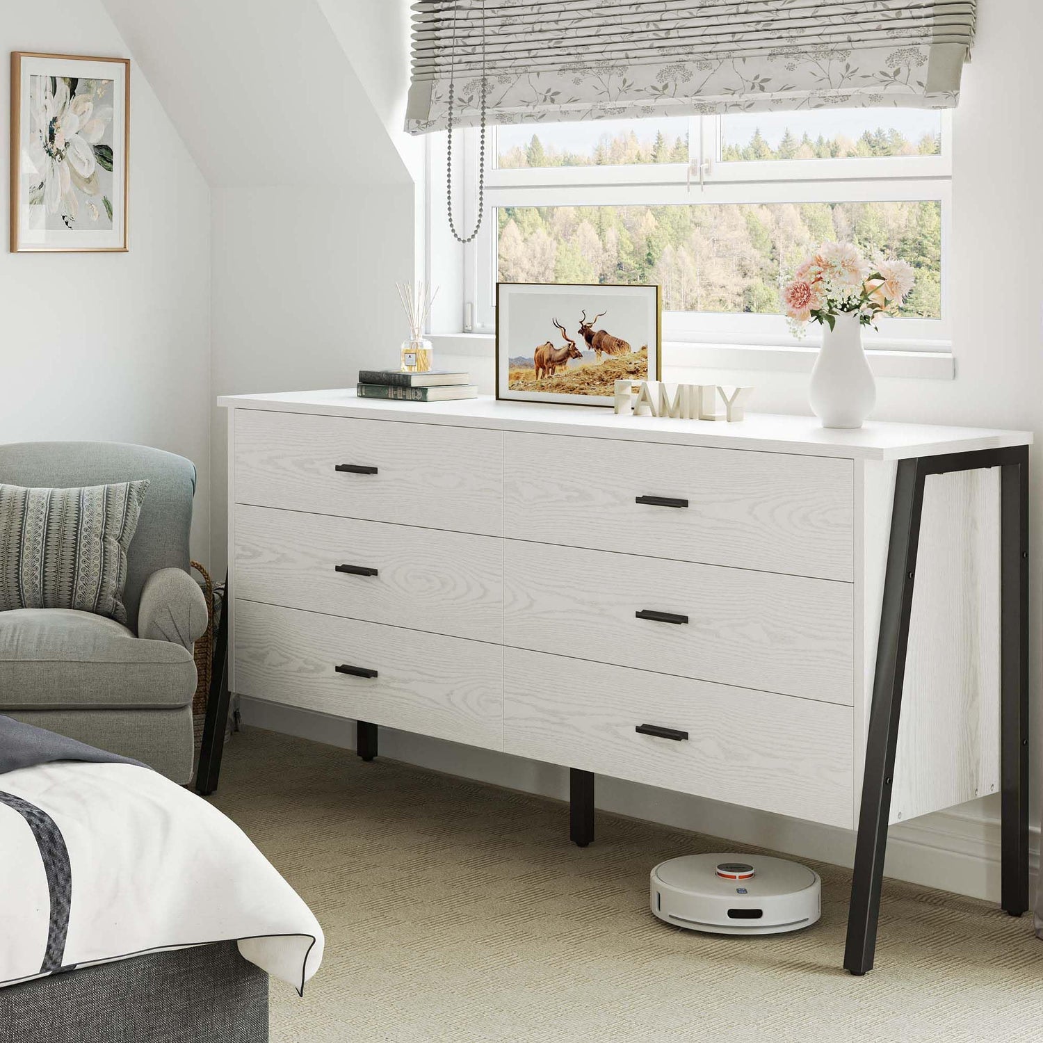 LIKIMIO 6 Drawer Double Dresser for Bedroom, 59" Chest of Drawers, White Dresser, TV Stand Large Storage Organizer Furniture in Living Room,Closet,Hallyway
