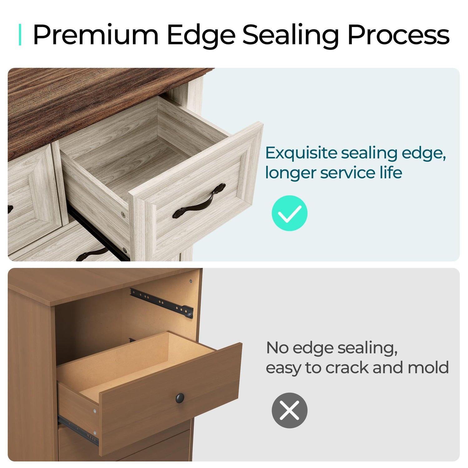 - "Say goodbye to flimsy drawers with surface stickers! Our LINSY HOME farmhouse dresser is crafted with paper edge strips soaked in modified melamine grease for a silky feel and better durability."