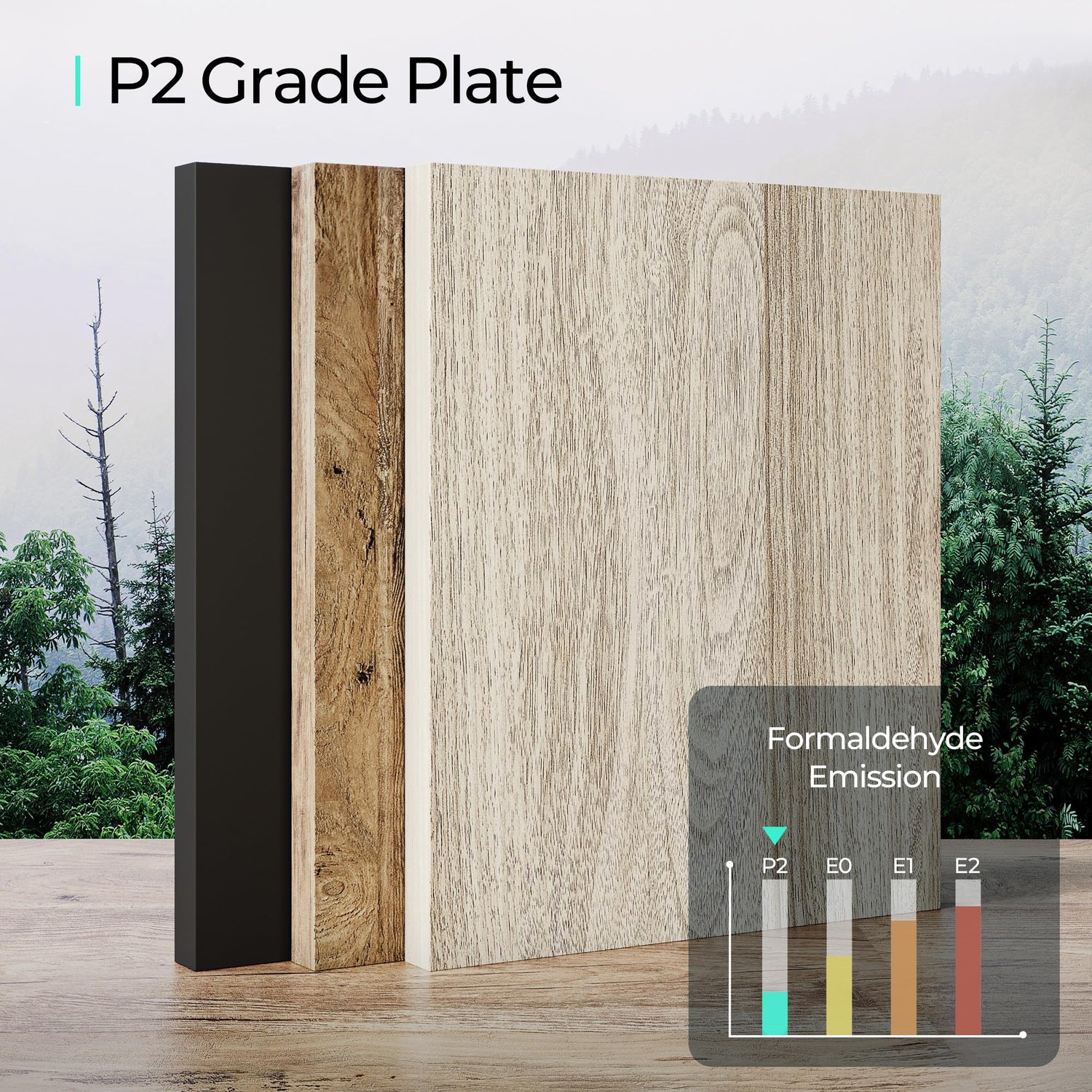 - "P2 Grade Board - the superhero of eco-friendly and affordable materials - is the star of this farmhouse dresser show. Plus, premium metal slides give you buttery smooth drawer gliding. Winning!"