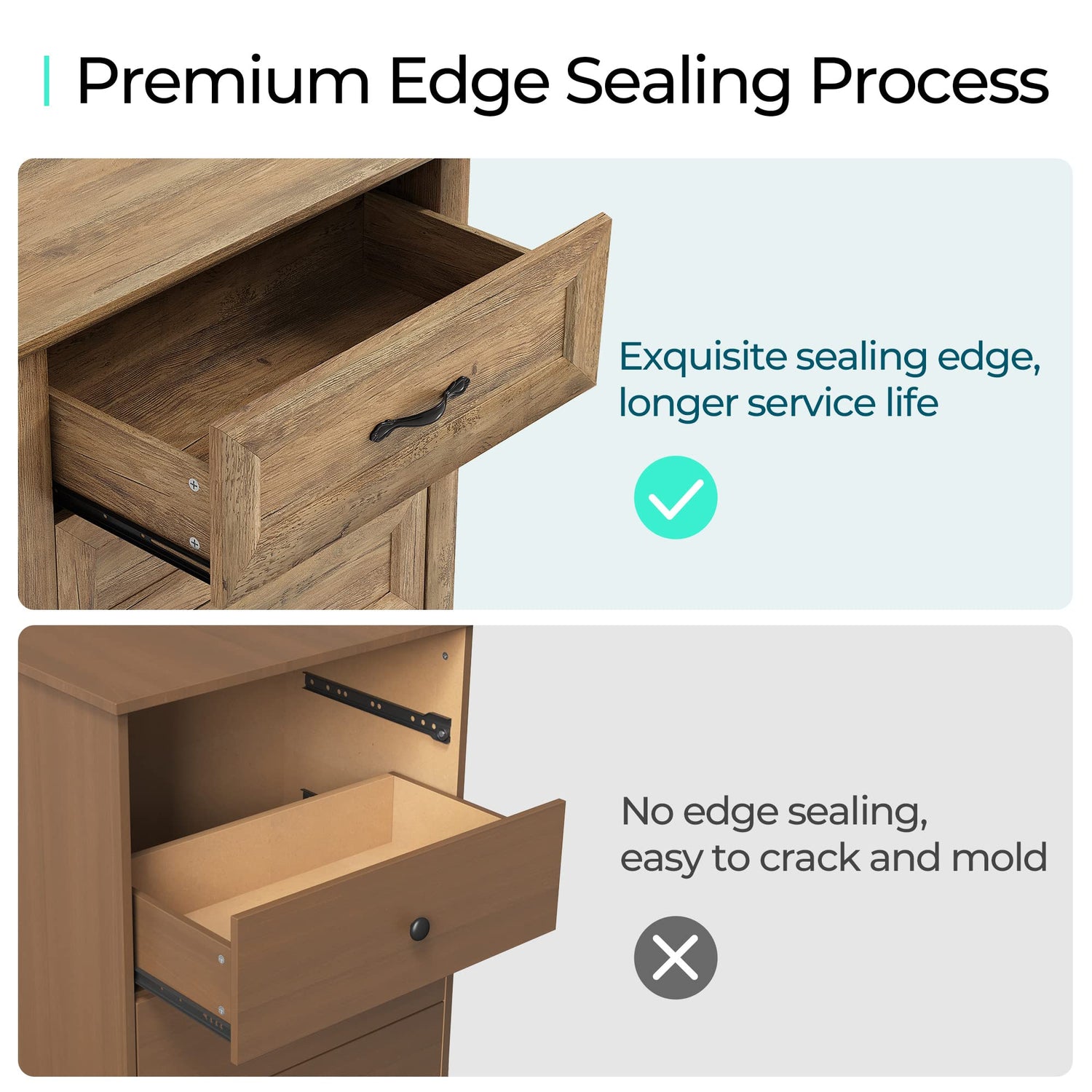 - [TIMELESS DESIGN] - Elegant lines, framed drawer fronts and luxurious pull handles add appealing detail to this vintage inspired dresser, making it easy to adapt to any decorative style and creating a spacious look for your space.