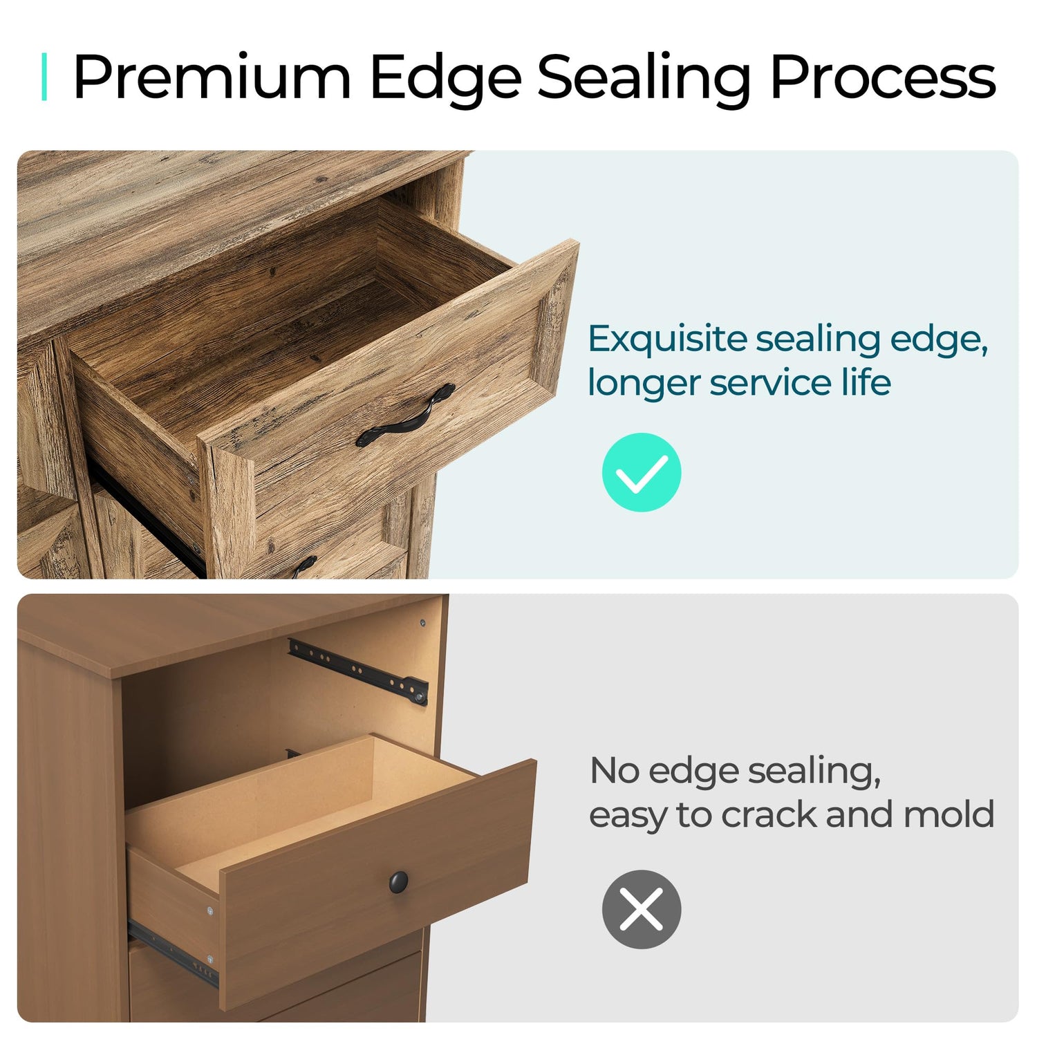 - [PREMIUN MATERIAL] - Crafted with CARB P2 & TSCA certified eco-friendly manufactured wood, we do care about your health. Exquisite sealing process gives the dresser a waterproof surface and smooth texture, making it long-lasting.