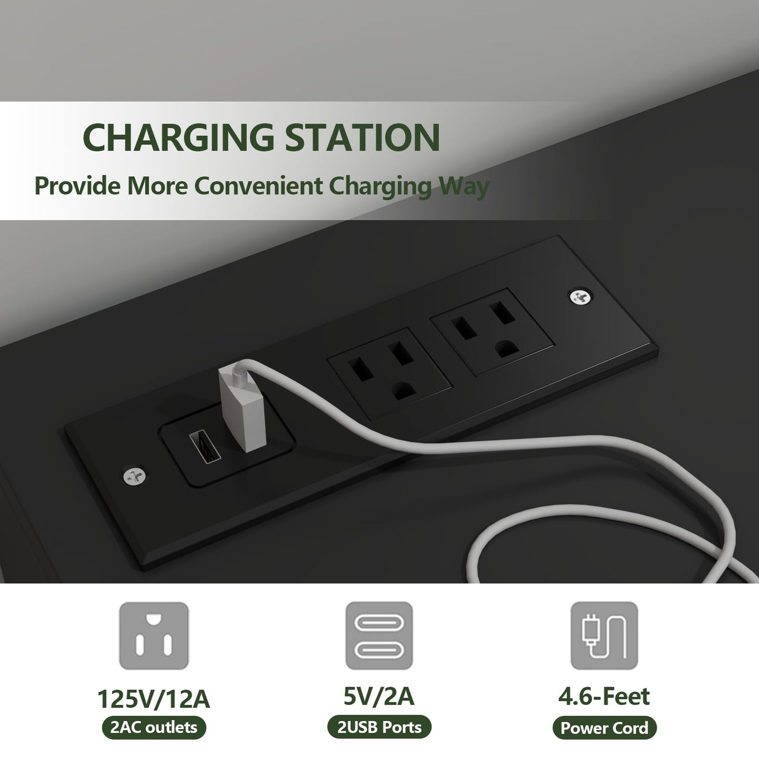 - White Drawer Dresser with Charging Station - Say goodbye to searching for a place to charge your devices. The Loomie 6 Drawer Dresser comes equipped with USB ports and outlets. The outlet has two plug-ins and two USB ports, making it incredibly convenient, especially if you have limited outlets in your room. You can use them to easily plug in your hairdryer or straightening iron.