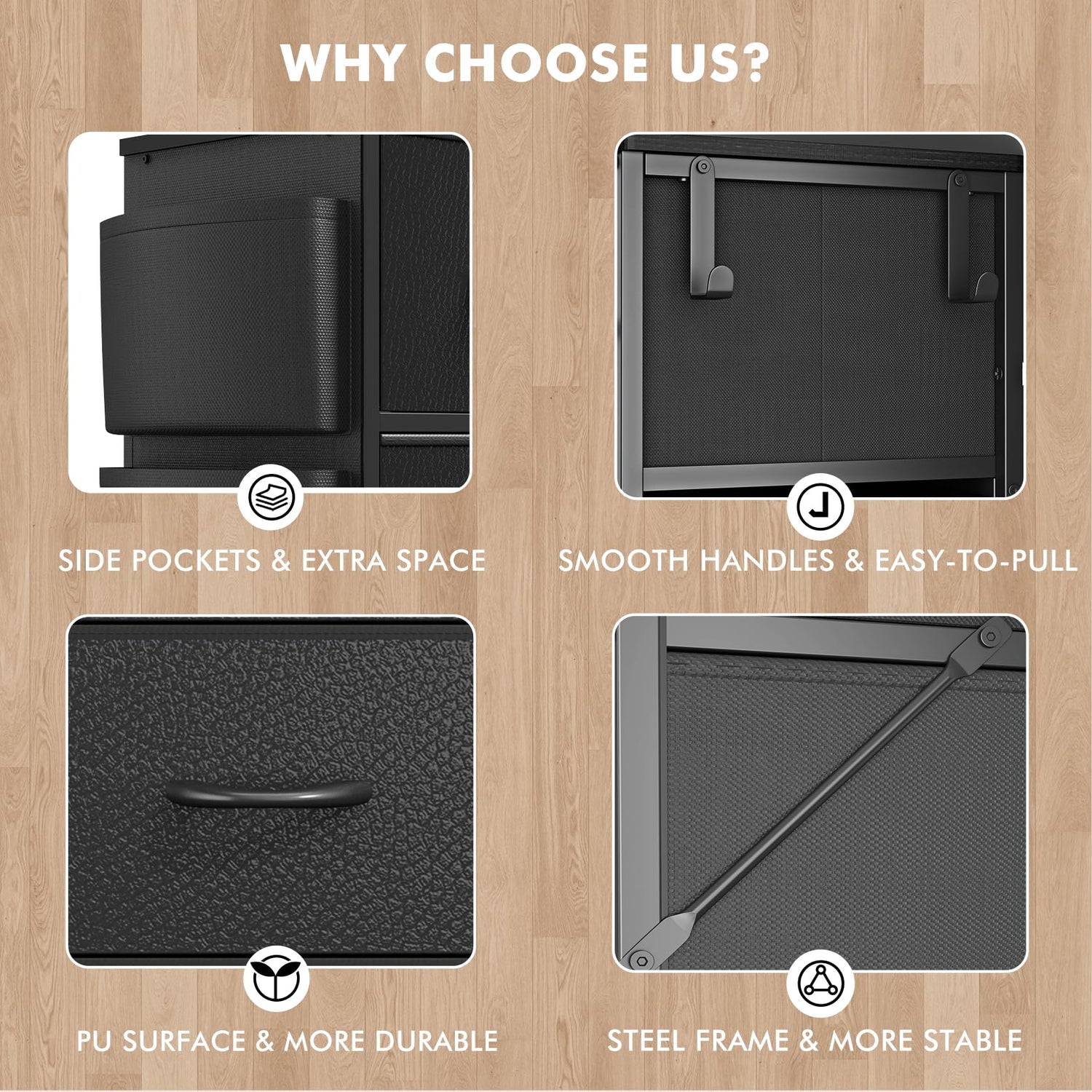 - Upgraded & Side Pockets & Hooks: Small design, big convenience, our side pocket hooks of the bedroom dresser redefine convenience! which allows you to hang small items such as keys, phones, glasses, scarves, and more, keeping them visible and easily accessible.