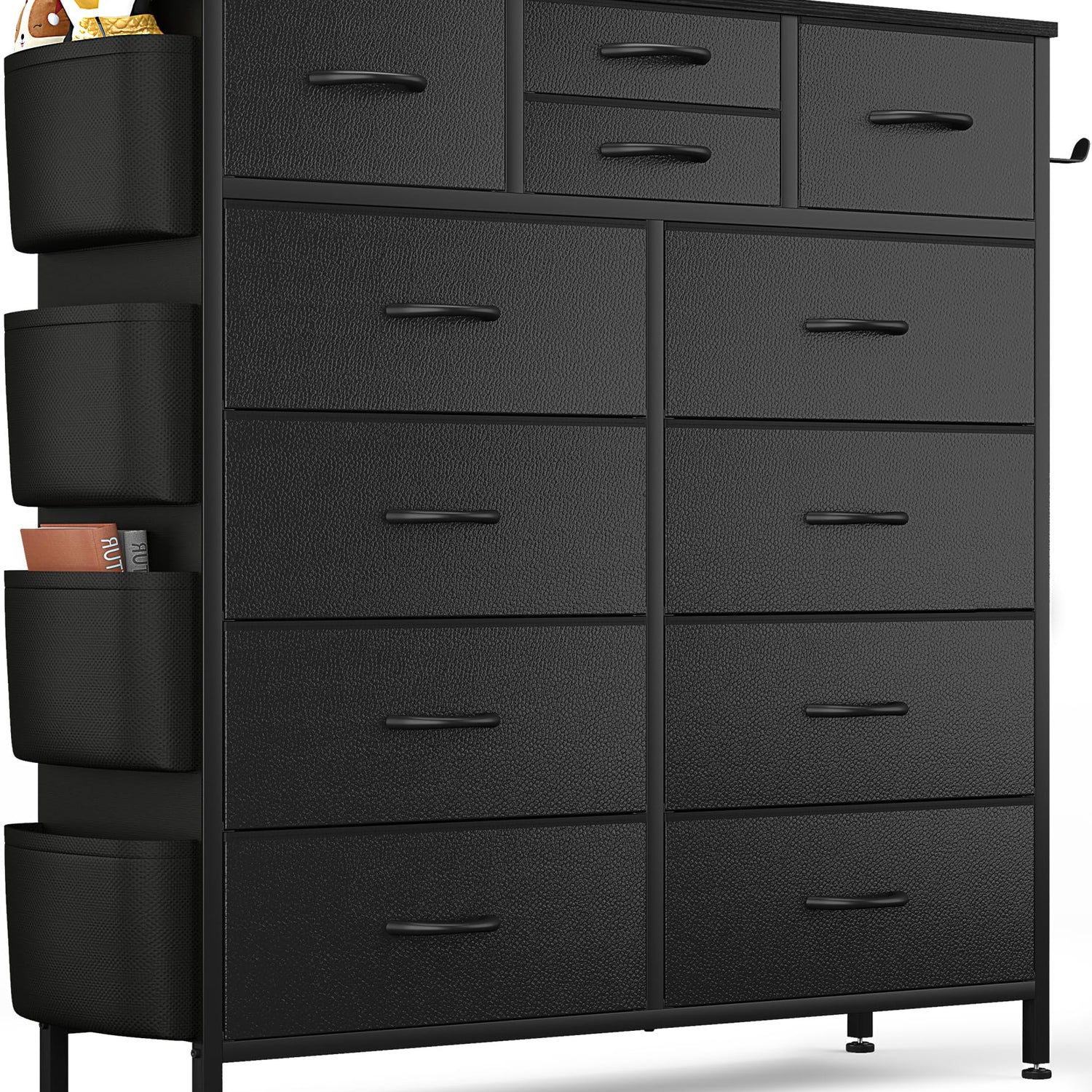 Lulive Dresser for Bedroom with 12 Drawers, Tall Dresser Chest of Drawers with Side Pockets and Hooks, Fabric Dresser Storage Tower for Closet, Hallway, Living Room (Black)