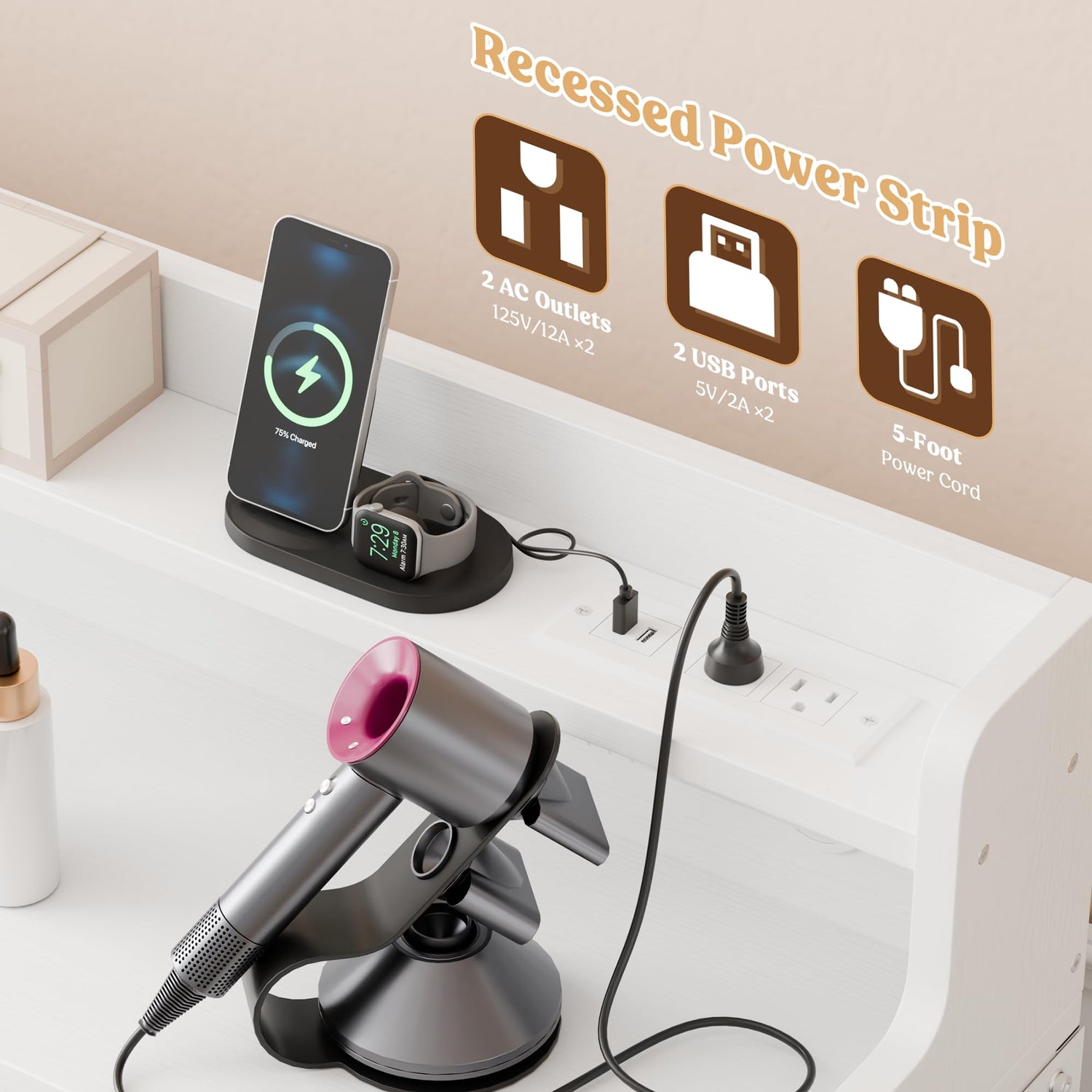 - Charging Station & LED Light: Dressers tabletop's plug (2 AC outlets and 2 USB ports) design gets rid of wires troubles, easy to charge your cell phone, headphones, watch, laptop, desk lamp, and 20 kinds of lights to create all kinds of atmosphere you need.