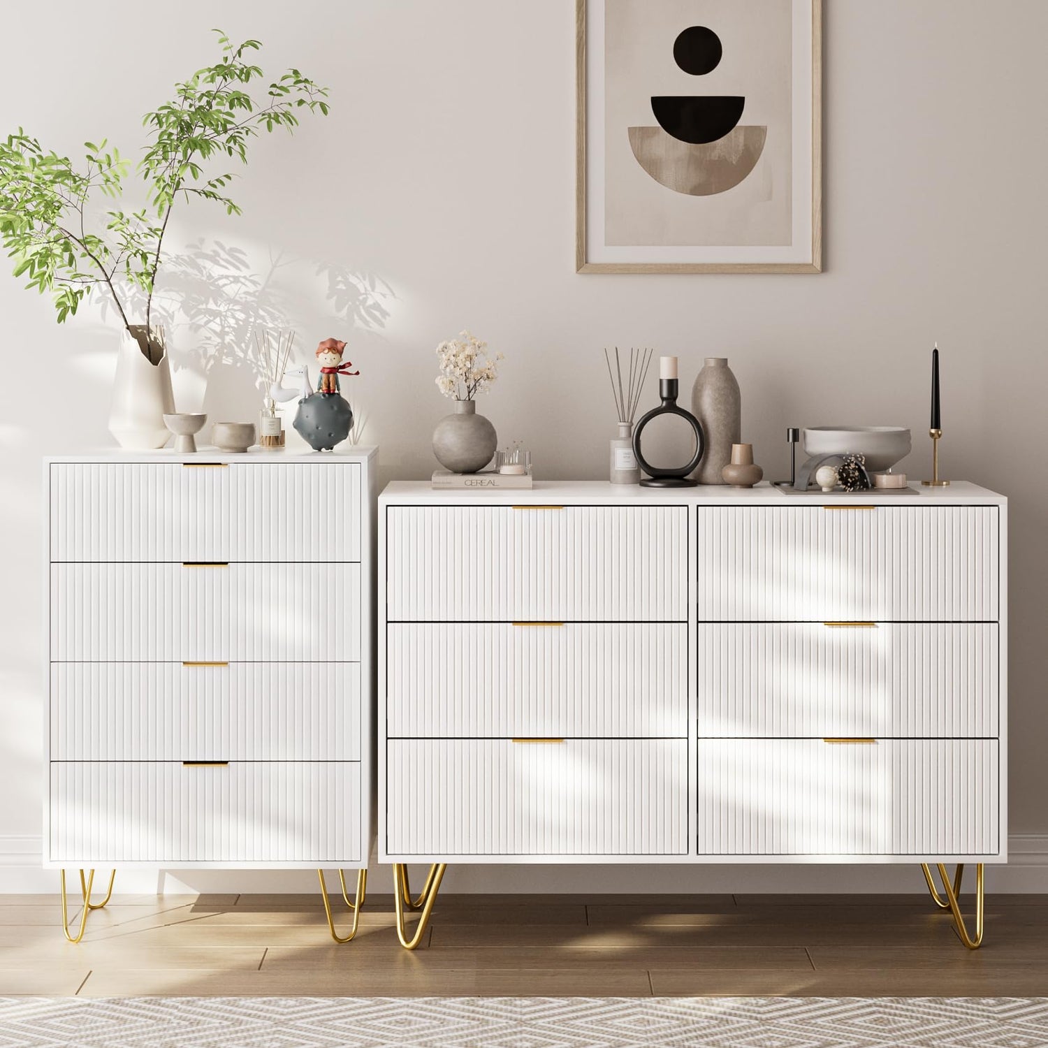 - MODERN DESIGN: Delicate metal legs, luxurious gold metal pull handles add appealing detail to this modern dresser, making it easy to adapt to any decorating style and creating a spacious look for your space.