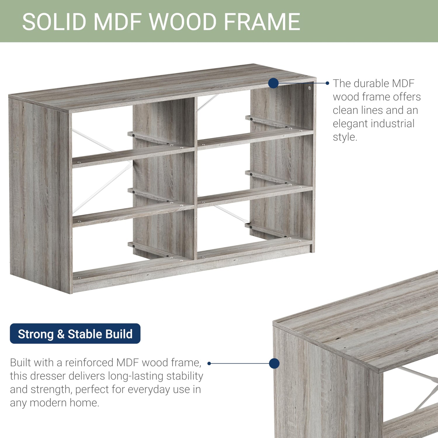 Modern 6-Drawer Dresser with Spacious Storage,Sturdy Wood Frame, and Large Capacity Drawers, Dressers for Bedroom, Home Organization Storage for Living Room or Hallway, Grey