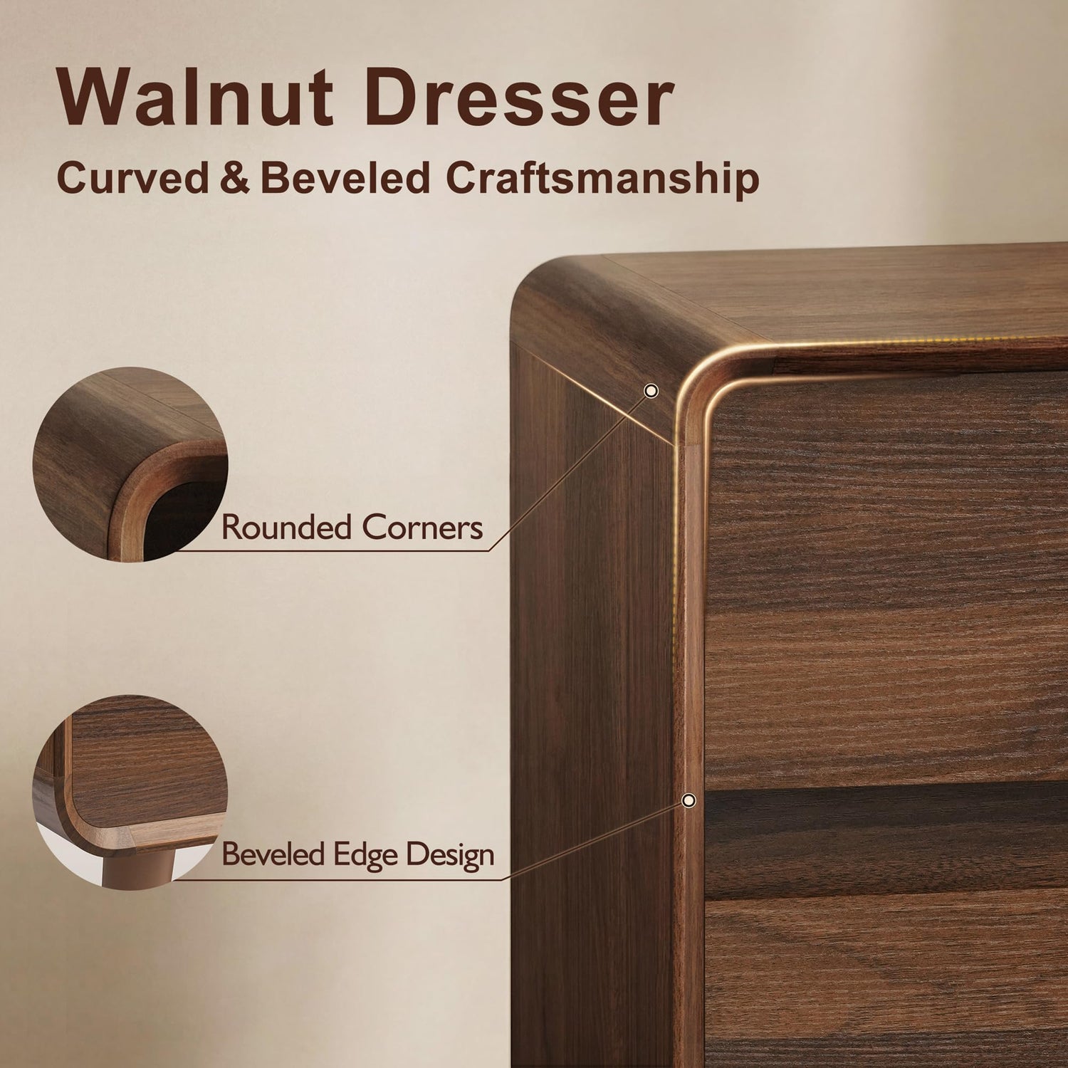 - Unquie Bentwood Design: The distinctive slatted panel and smooth curved contour design, paired with the wood grain texture of the tabletop, create a unique and elegant aesthetic for the wooden dresser. The mid-century modern design gives the white dresser a more modern feel. The rounded corners soften the look of the streamlined frame while providing a safe environment for your family.