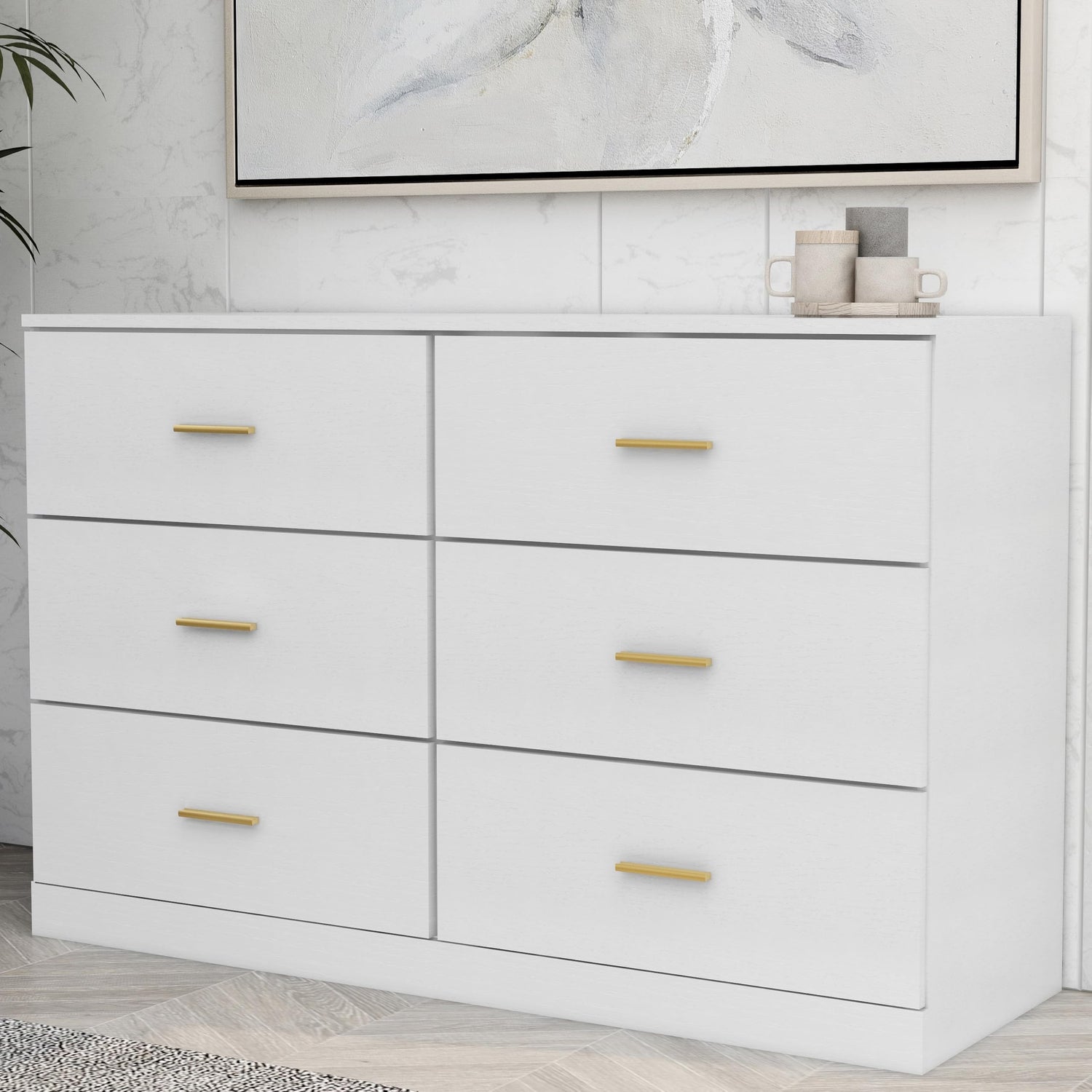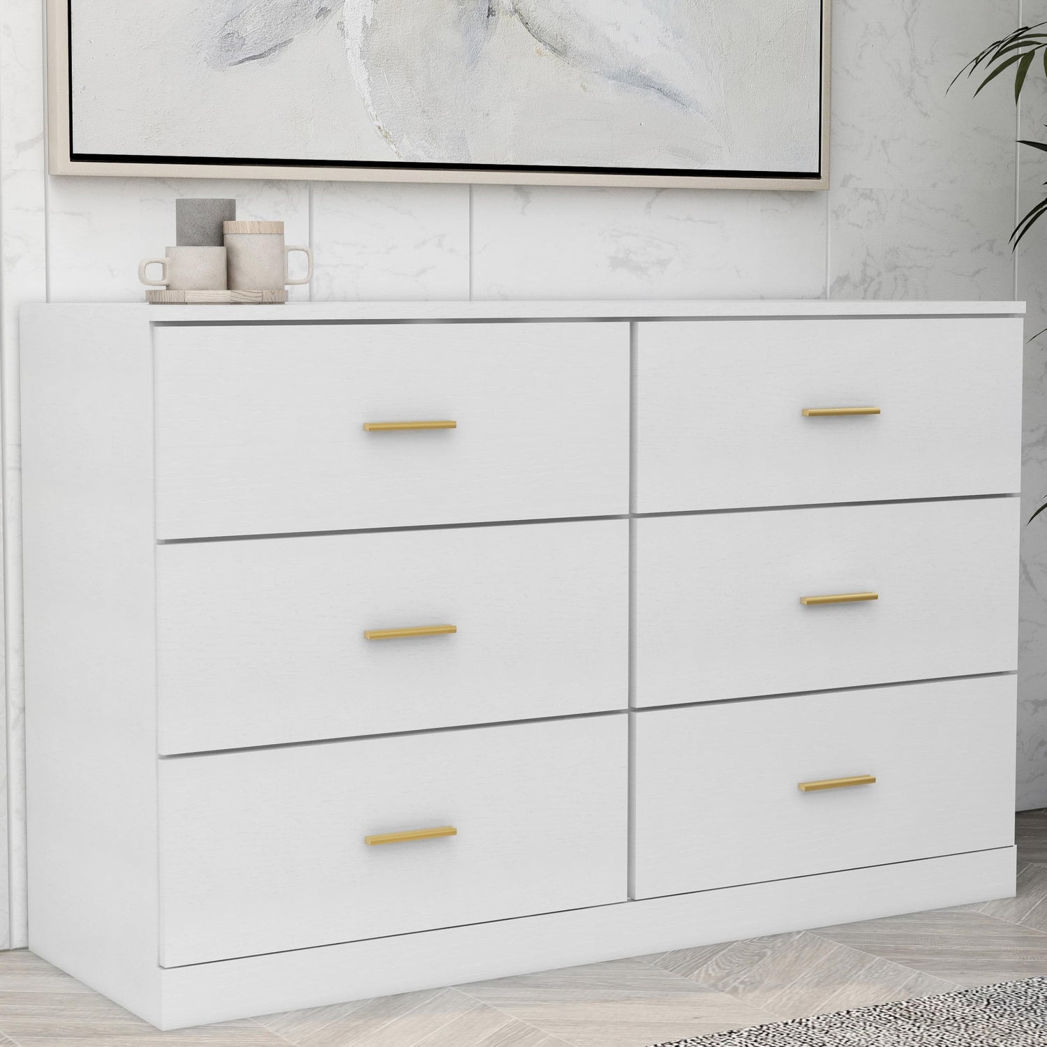 6-DRAWER DRESS: This dressing cabinet makes it easy for you to blend into a rural style. Whether in the guest room or children's bedroom, this warm and cozy item complements various environments Handmade: This storage unit is made of engineered wood (MDF/particle board) and decorative laminate. 6 smooth sliding drawers, vinyl wrapped on the sides and back Minimalist style: The golden surface of this dressing table has a universal appeal, which is really captivating. Matte white hardware adds a touch of modern style to the appearance Storage solution: Dresses and wardrobes are excellent furniture for storing clothes, sheets, and other essentials Required components: including easy to follow instructions and hardware. Recommend two people. A screwdriver and hammer are required for assembly (not included)