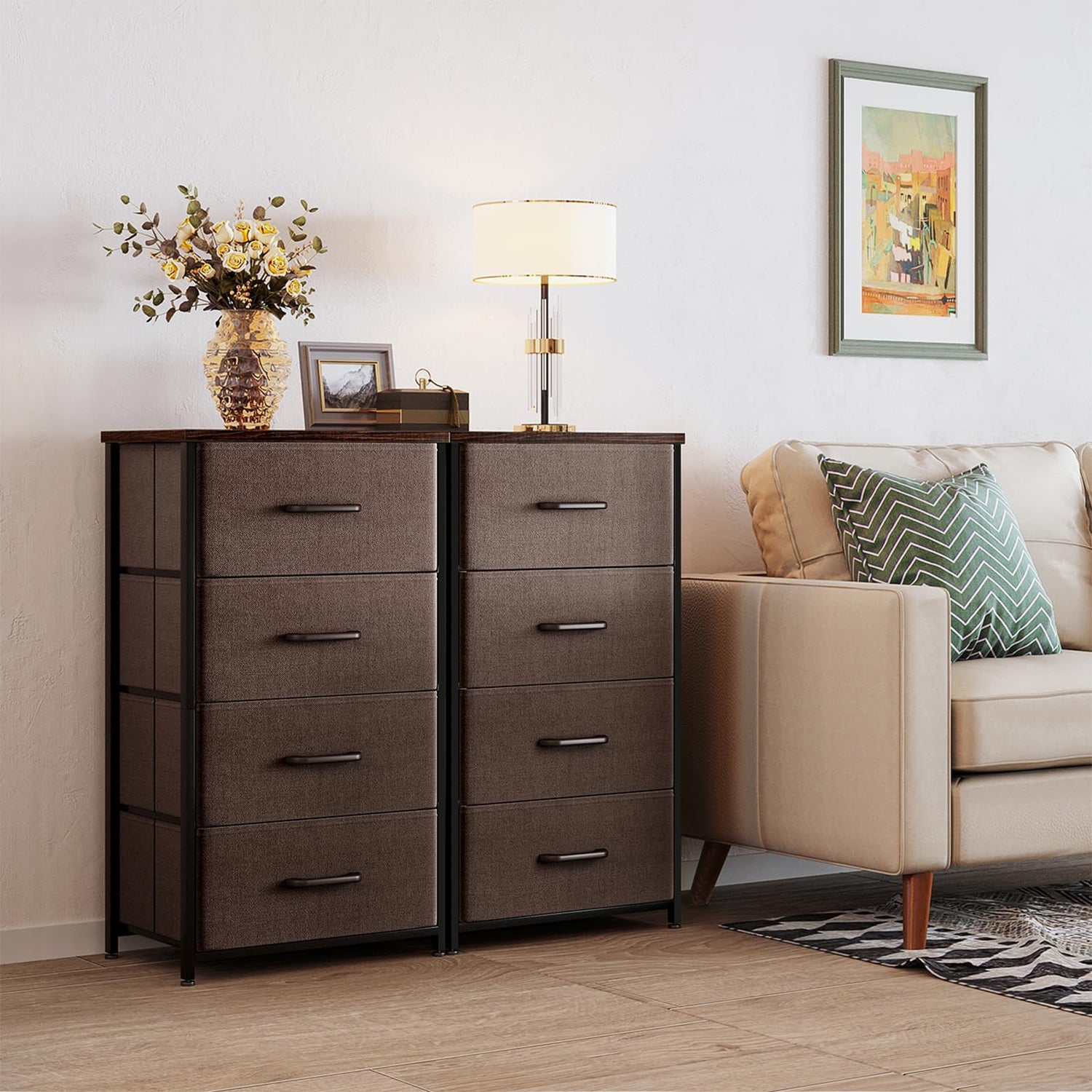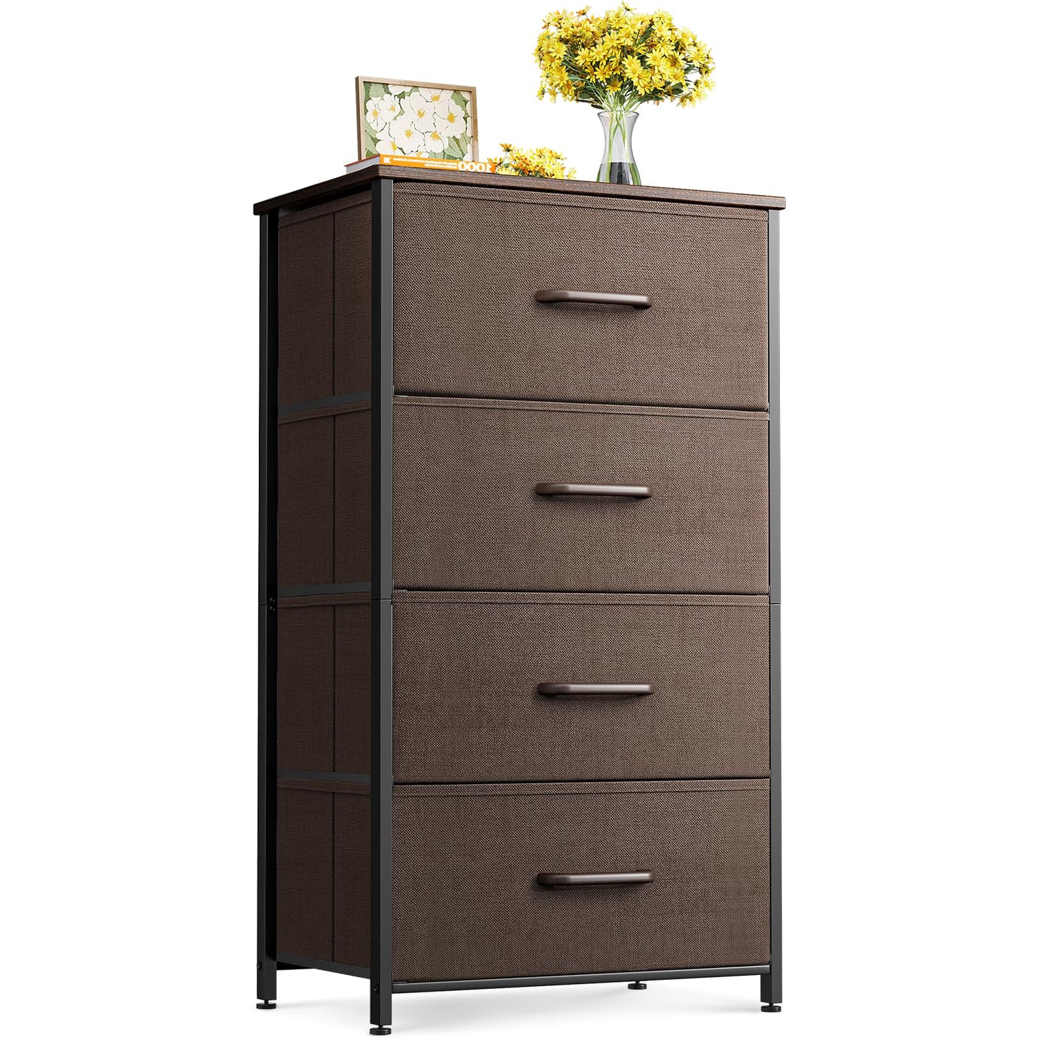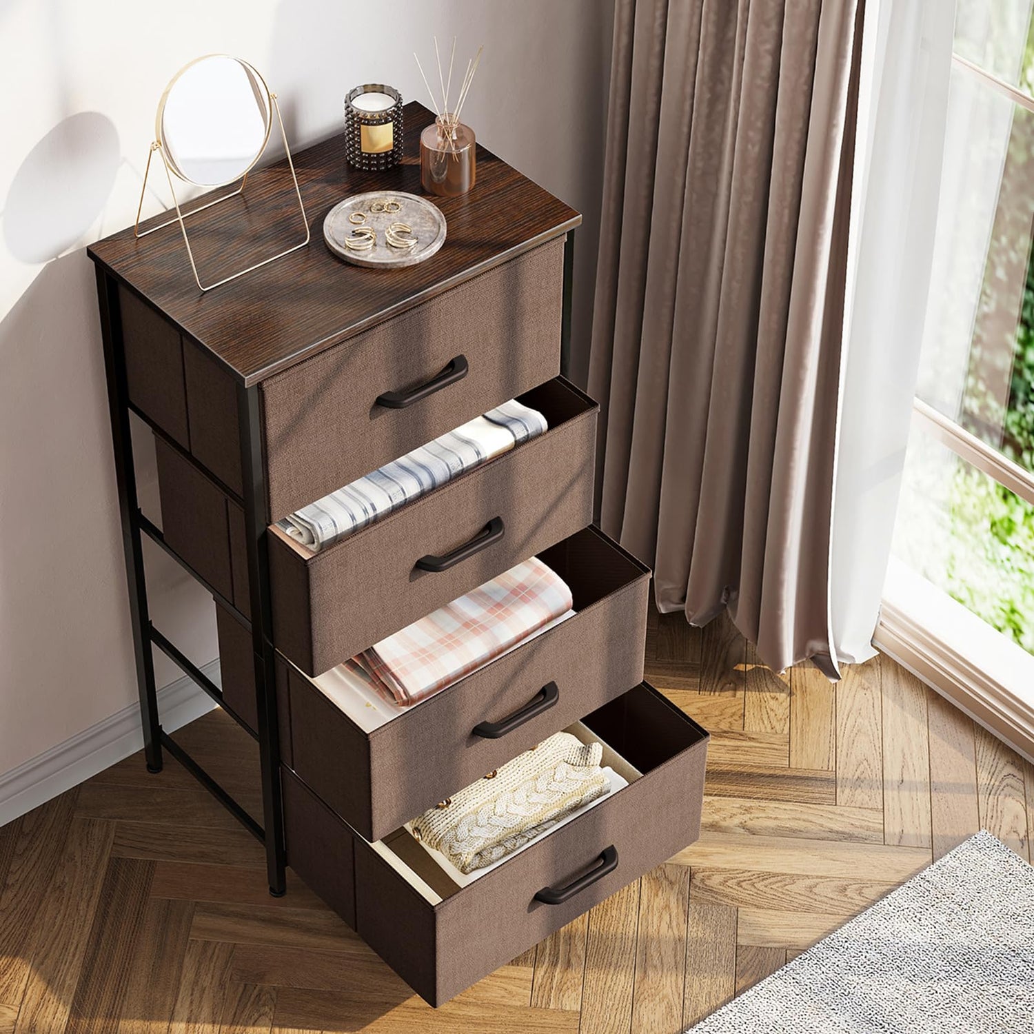 ODK Dresser for Bedroom with 4 Storage Drawers, Small Dresser Chest of Drawers Fabric Dresser with Sturdy Steel Frame, Dresser for Closet with Wood Top, Brown
