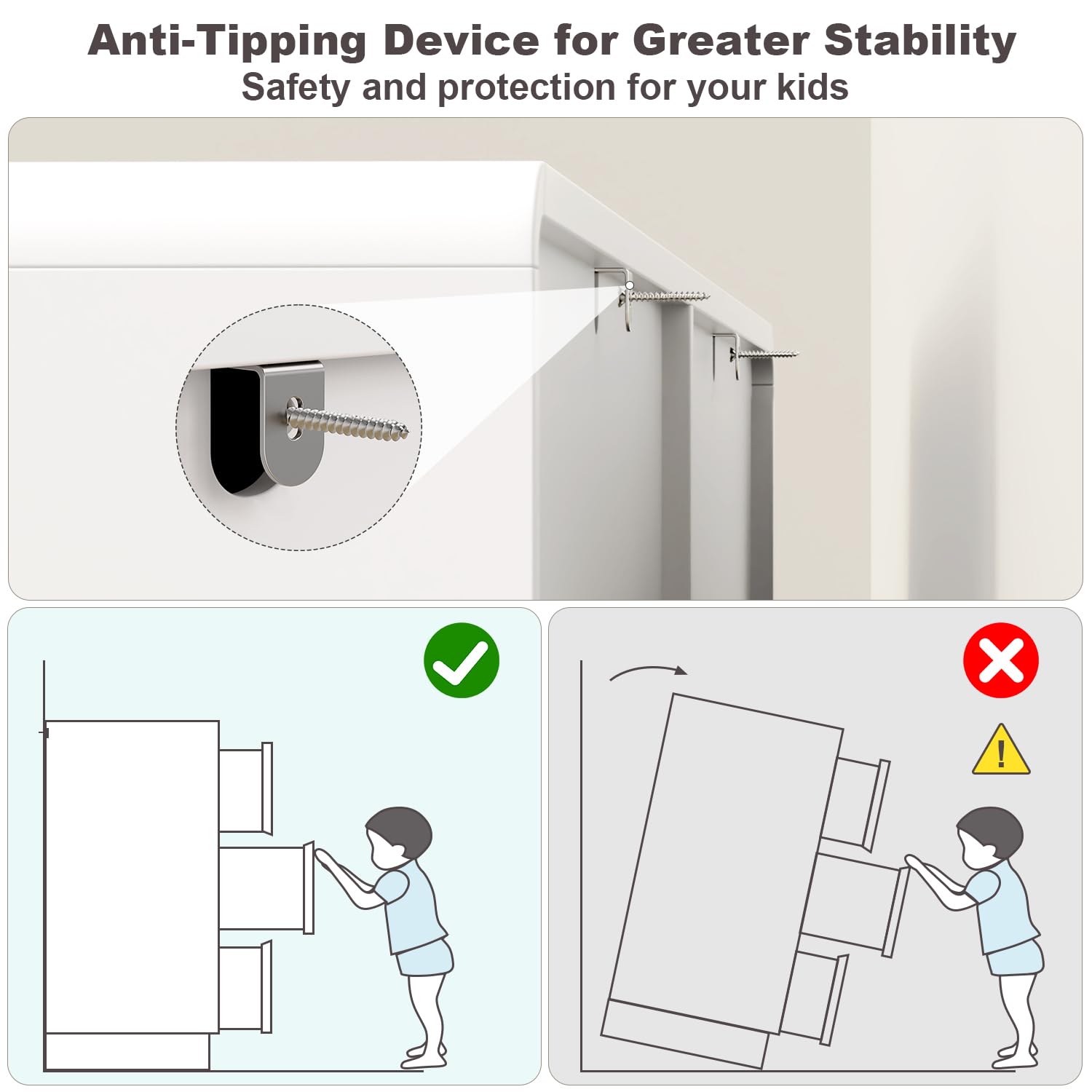 - 【Anti-Tipping Device】White dresser for bedroom there are two anti-tipping iron holes on the back (can be removed if not installed), which can stabilize the cabinet and ensure the safety of your family. at the same time, please more safety tips for your children, do not step on the drawers, do not climb the dresser!