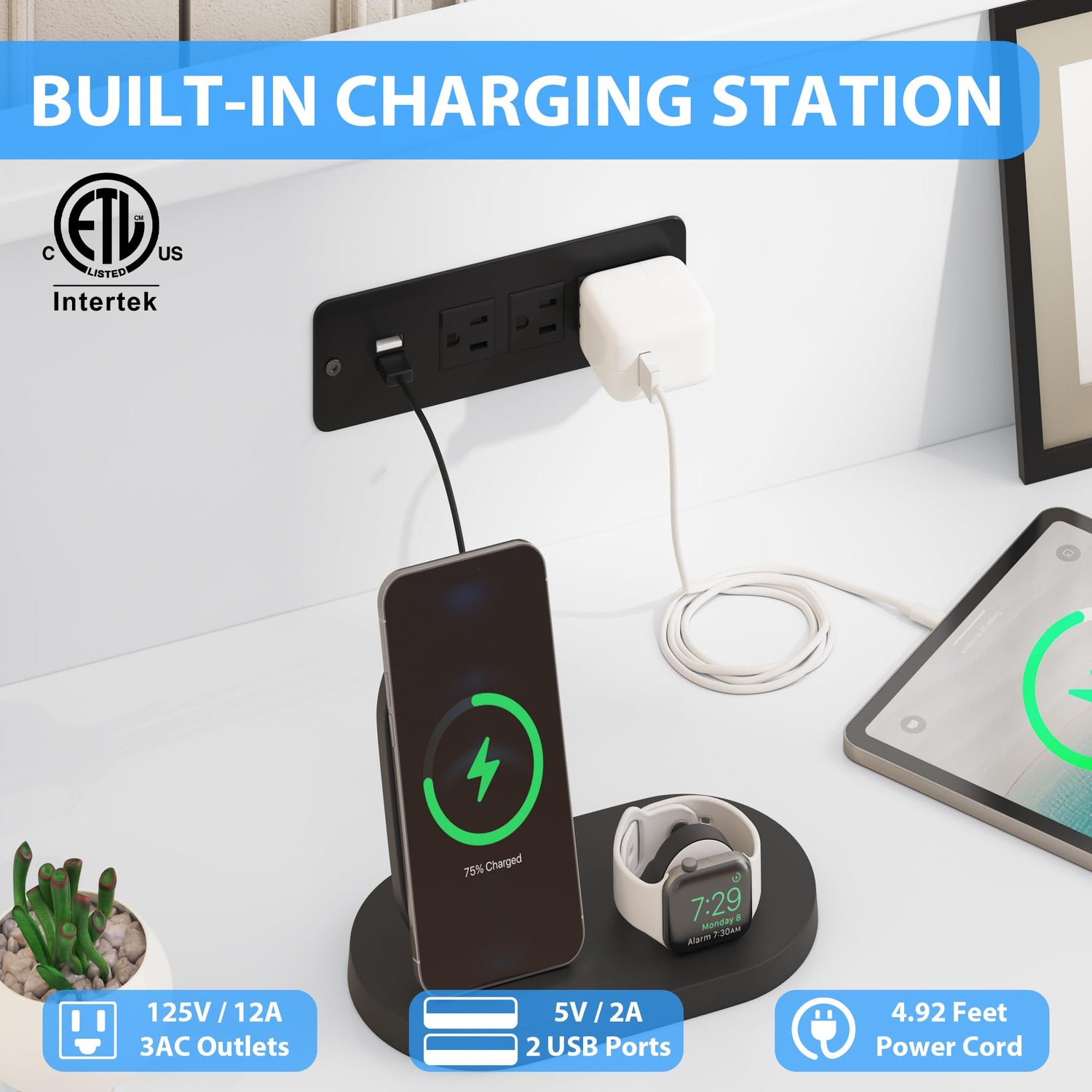 - 【Effortless Charging Hub】Our modern dresser for bedroom thoughtfully integrates 3 AC outlets and 2 USB ports, ingeniously designed to cater to modern needs. One USB port exclusively powers the LED illumination, while the remaining outlet and USB port facilitate charging of devices like smartphones, headphones, desk lamps, and more. This versatile charging station fits seamlessly into any space, be it your bedroom or living area.