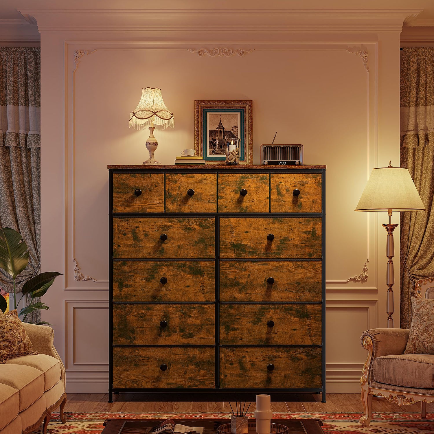 - Easy Assembly & Professional Support: With clear step-by-step assembly instructions and comes with all necessary assembly tools included in the package, you can assemble this 12 drawer dresser within 30 minutes. If you encounter any problems during installation or if you receive it damaged, scratched or missing, please feel free to let us know and our customer service team will provide you with a satisfactory solution within As soon as possible