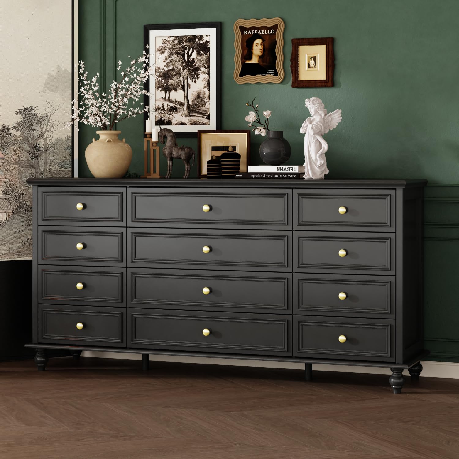 ROMSHINE 12 Drawers Dresser for Bedroom, 63" Wide Chesst of Drawers with Wooden Legs, Traditional Closet Storage Dressers Organizer, Bedroom Dresser for Closet, Living Room, Hallway, Black