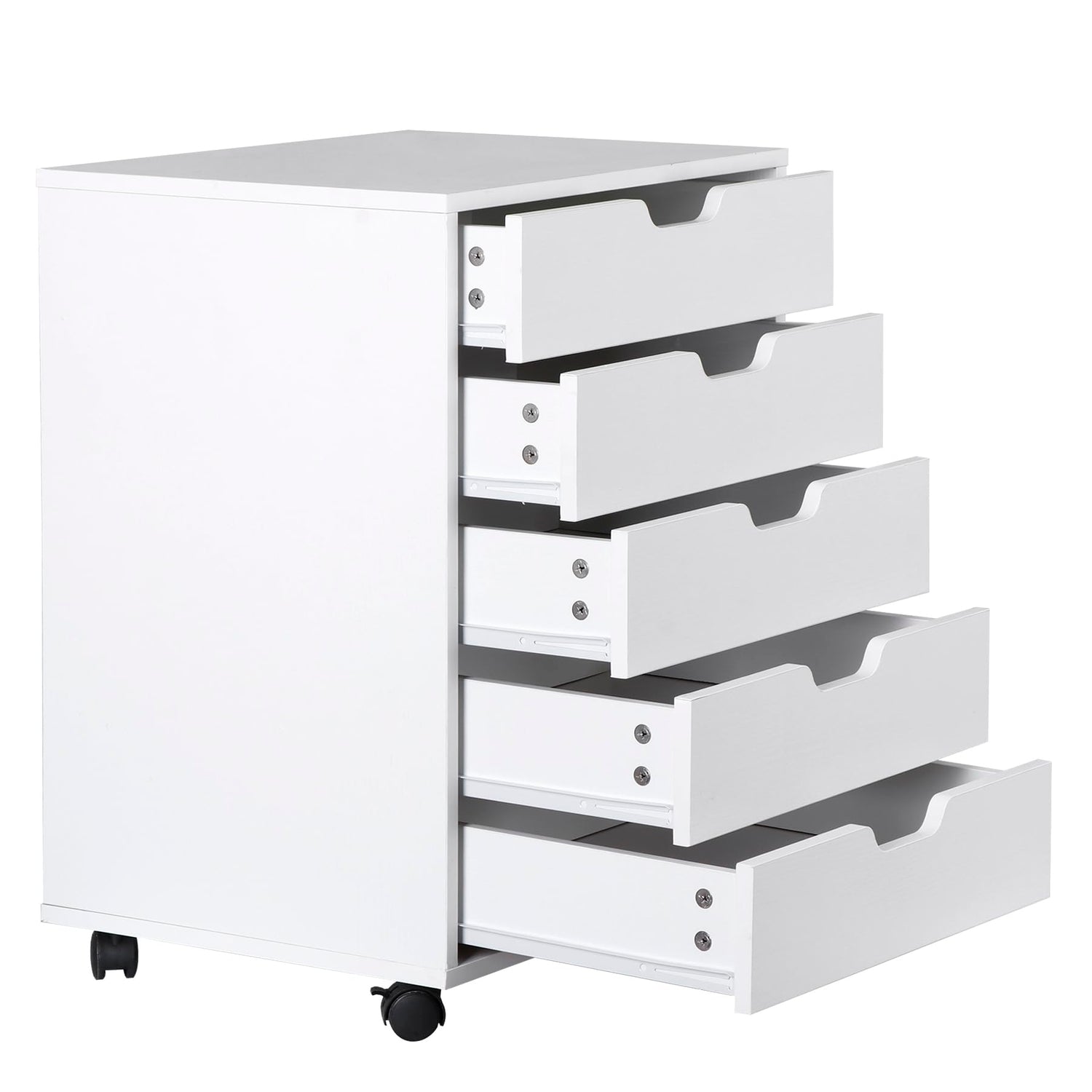 Saicool 5 Drawer Chest Storage Cabinet Dresser, Wood Nightstand, Mobile Organizer Drawers for Office Bedroom Hallway Entryway Closets,White