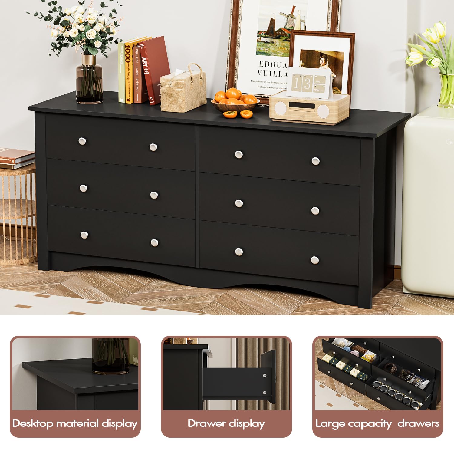 Shahoo Wood Dresser for Bedroom, Wide Chest of Drawers with 6 Drawers,Storage Tower Unit, Modern Closet Store Organizer for Living Room, Hallway (Black)