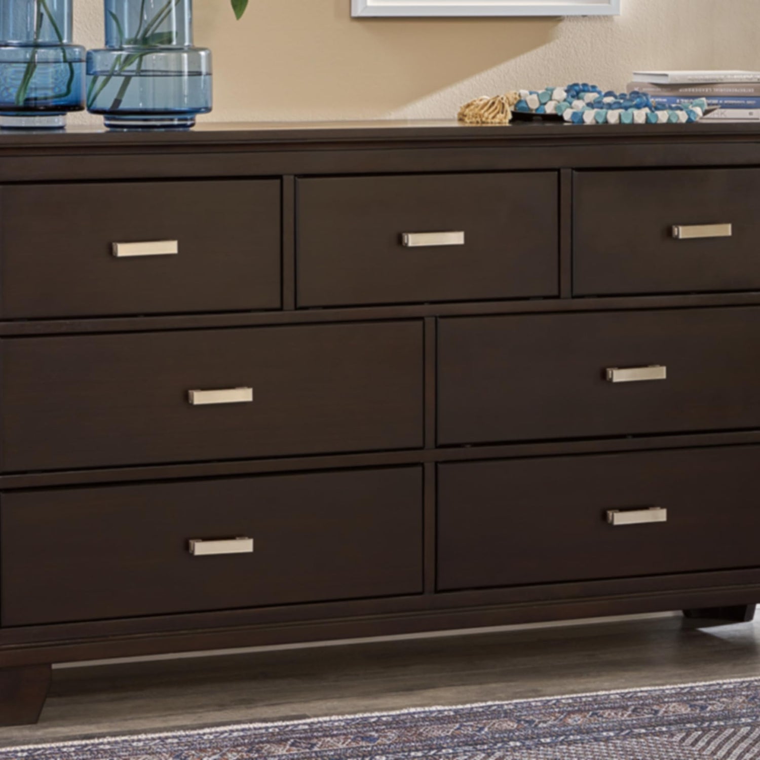 - 7-DRAWER DRESSER: Feast your eyes on this richly versatile dresser chest. It brings a stunning look to your bedroom that's neither too stuffy nor too trendy