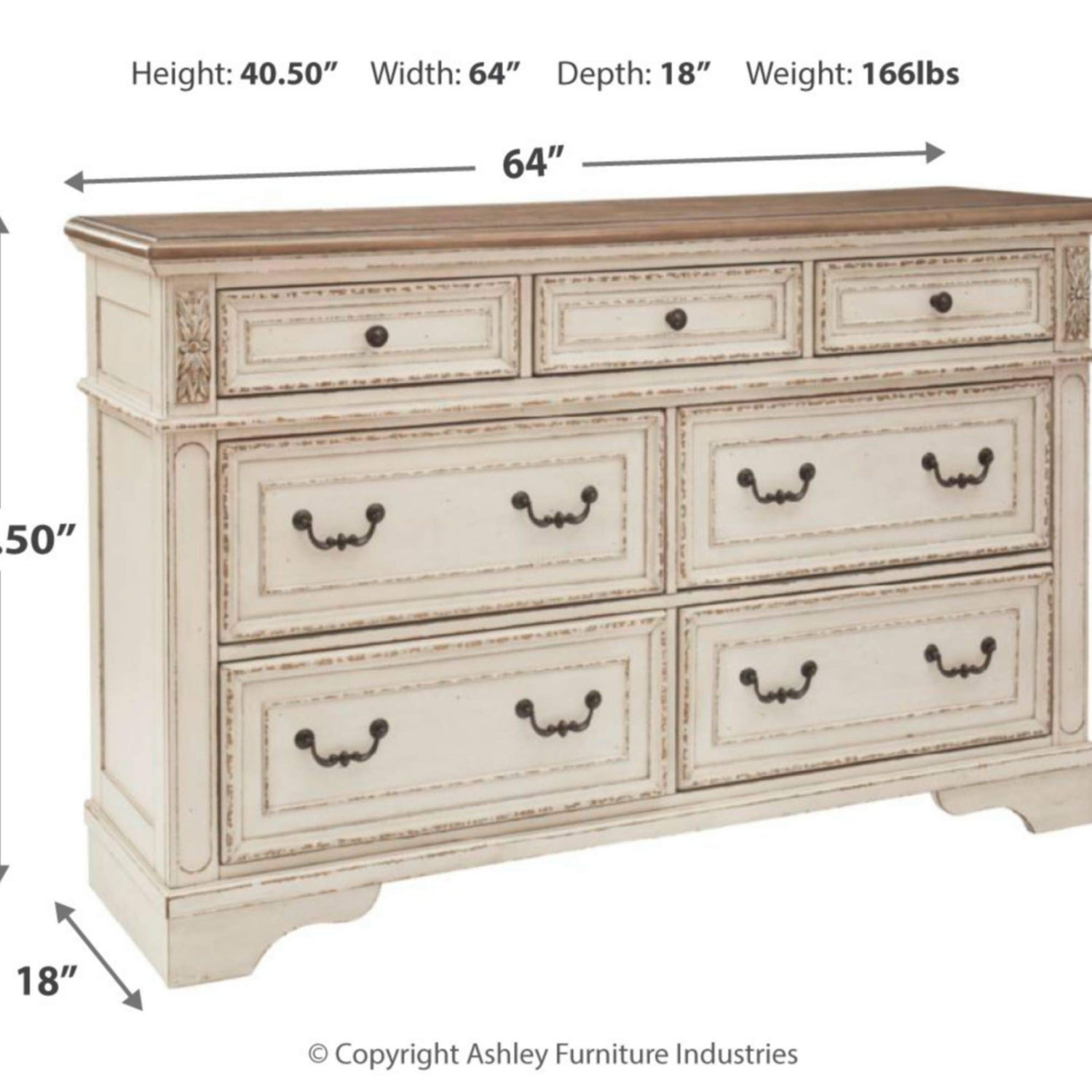 Signature Design by Ashley Realyn French Country 7 Drawer Two Tone Dresser, Chipped White