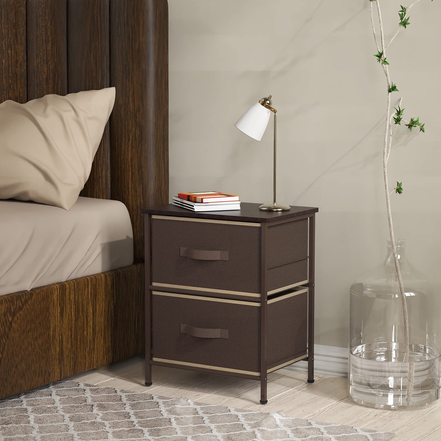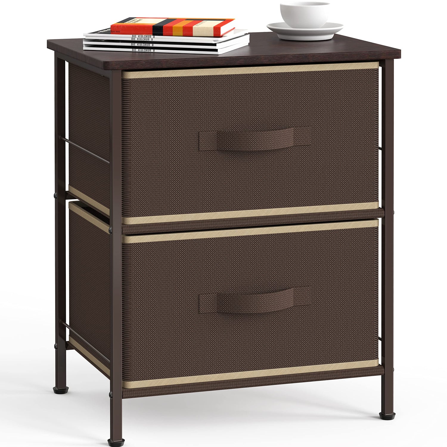 Simple Houseware Night Stand Dresser for Bedroom 2-Tier Organizer Drawer Storage Tower, Brown