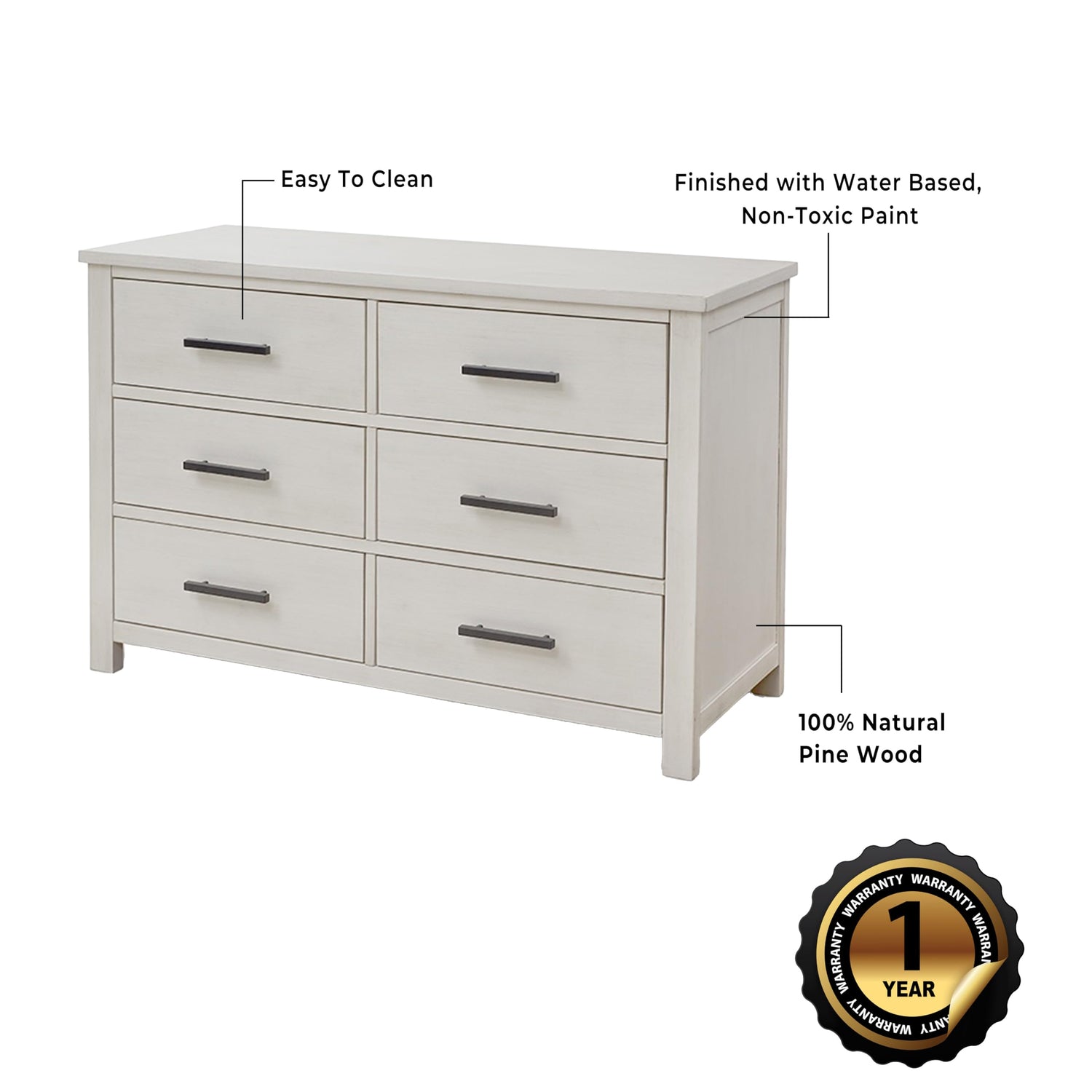 • 🔒 Changing-Top Ready with Safety Features & Warranty This dresser can be used as a changing station with an optional changing topper (sold separately). Includes an anti-tip kit for added stability, meets ASTM safety standards, and is backed by a 1-year manufacturer’s warranty for peace of mind.